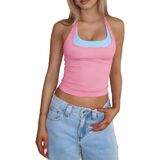 قميص نسائي مثير برقبة رسن Y2K كتلة اللون مقصوص بدون أكمام للتمرين والخروج بدون أكمام صيفي بدون ظهر in Kuwait