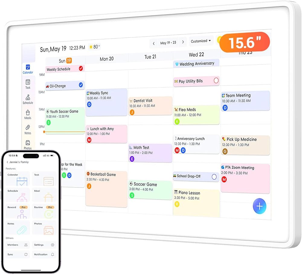 【شاشة لمس تفاعلية - تبسيط تنظيم الأسرة】: يوفر هذا التقويم الرقمي مقاس 15.6 بوصة شاشة لمس عالية الدقة نابضة بالحياة توفر طريقة بديهية للعائلات لتنظيم ومزامنة الجداول الزمنية. يمكنك إدارة المواعيد والمهام والتذكيرات بسهولة من خلال شاشة تفاعلية واضحة تتكيف مع احتياجات عائلتك.