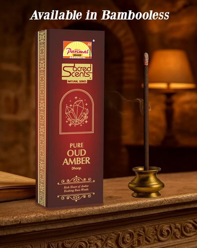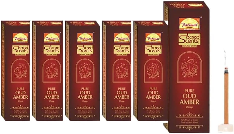 Step into a world of divine luxury with Parimal Sacred Scents Pure Amber Oudh Dhoop Sticks — a captivating fusion of precious Amber and rare Oudh woods, hand-blended into bamboo-less incense sticks. Designed to elevate your rituals, each stick slowly releases a deep, woody and resinous aroma that lingers for hours, creating a tranquil and sacred atmosphere. Crafted for those who seek premium aromatic experiences, this pack includes 6 units of 45g each (total 270g), offering 78–88 long-lasting sticks that burn for 45–60 minutes each. Ideal for meditation, spiritual practice, or simply relaxing after a long day, this is your daily ritual companion — now with a complimentary dhoop holder included for convenience.