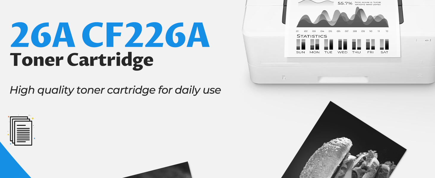 • طباعة ثابتة ومتسقة: بفضل المواد الخام المتميزة والإنتاج الآلي بالكامل، تتميز جودة طباعة مسحوق الحبر 26A الخاص بنا بأنها رائعة مع نص واضح وواضح وألوان سوداء غنية. لا اللطخات ولا مشاكل. خدمة العملاء على مدار 24 ساعة جاهزة لأية أسئلة ستطرحها.