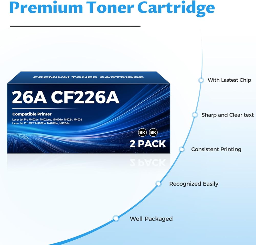 • توافق عالٍ: مجهز بأحدث شريحة، هذا الحبر المعاد لخرطوشة الحبر HP 26A Black Laser Jet متوافق تمامًا مع خرطوشة الحبر M426fdw، وخرطوشة الحبر M402n، وخرطوشة الحبر M402dw، وخرطوشة الحبر M402dne، وخرطوشة الحبر M402dn، وخرطوشة الحبر M426fdn.