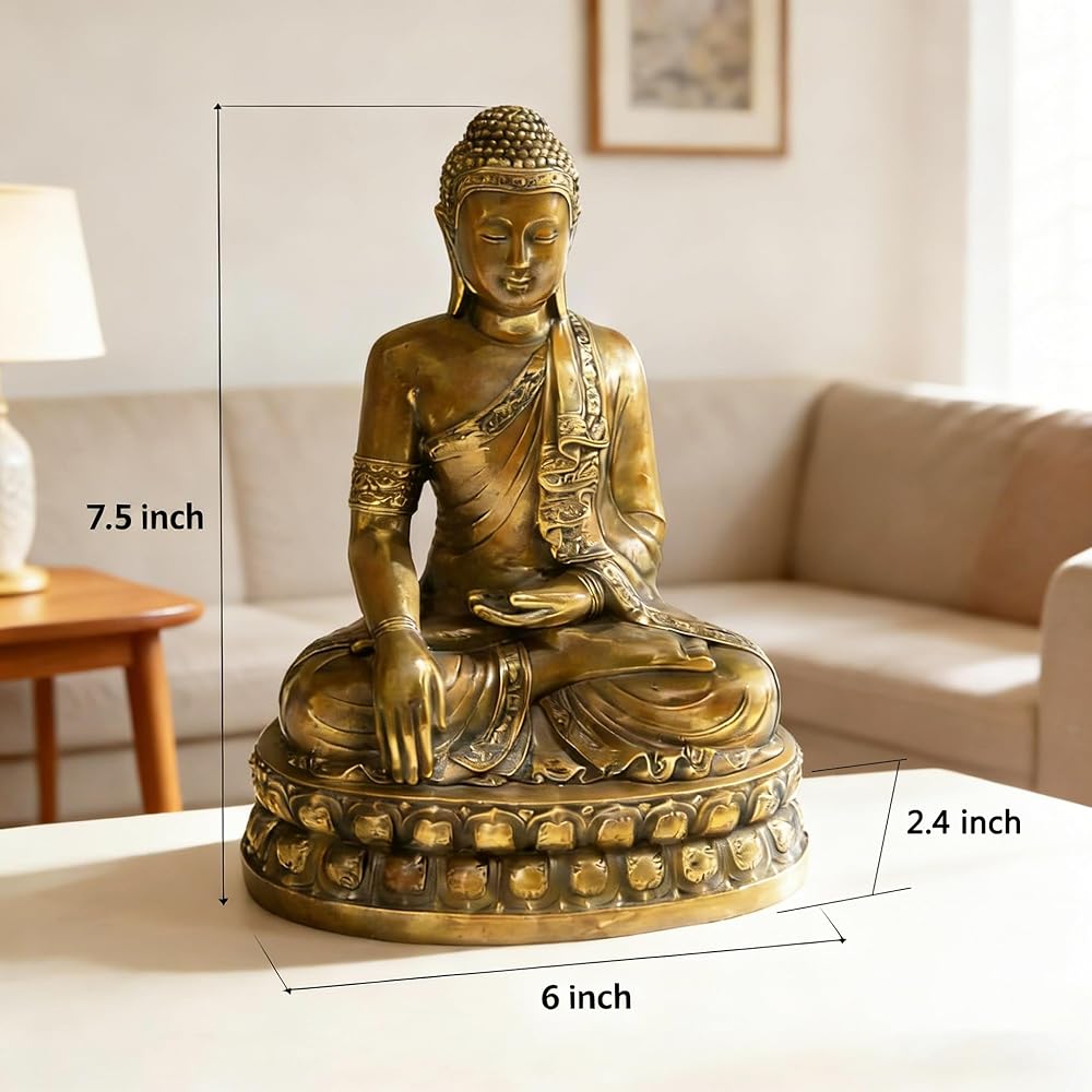تمثال بوذا الطب النحاسي النقي في الأماكن المغلقة 7.5 بوصة - ديكور روحي معدني عتيق لمذبح منزل غرفة زن ومساحة التأمل - تماثيل بودا الآسيوية المصنوعة ثقيلًا