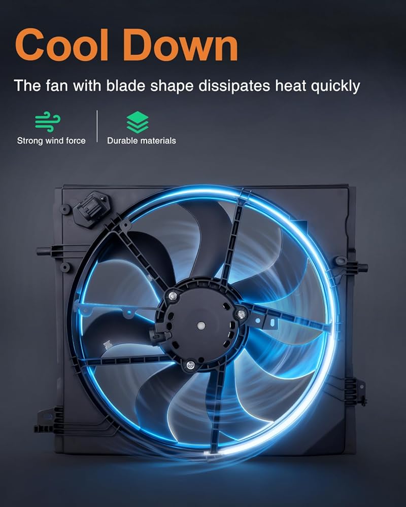 【سهلة التركيب】يمكنك الحصول على حزمة تتضمن 1x مجموعة مروحة تبريد الرادياتير. تركيب الوضع الأصلي، مما يضمن التوافق بنسبة 100% مع سيارتك. عملية التثبيت بسيطة ويمكن إكمالها باستخدام الأدوات القياسية، مما يوفر وقت التثبيت.