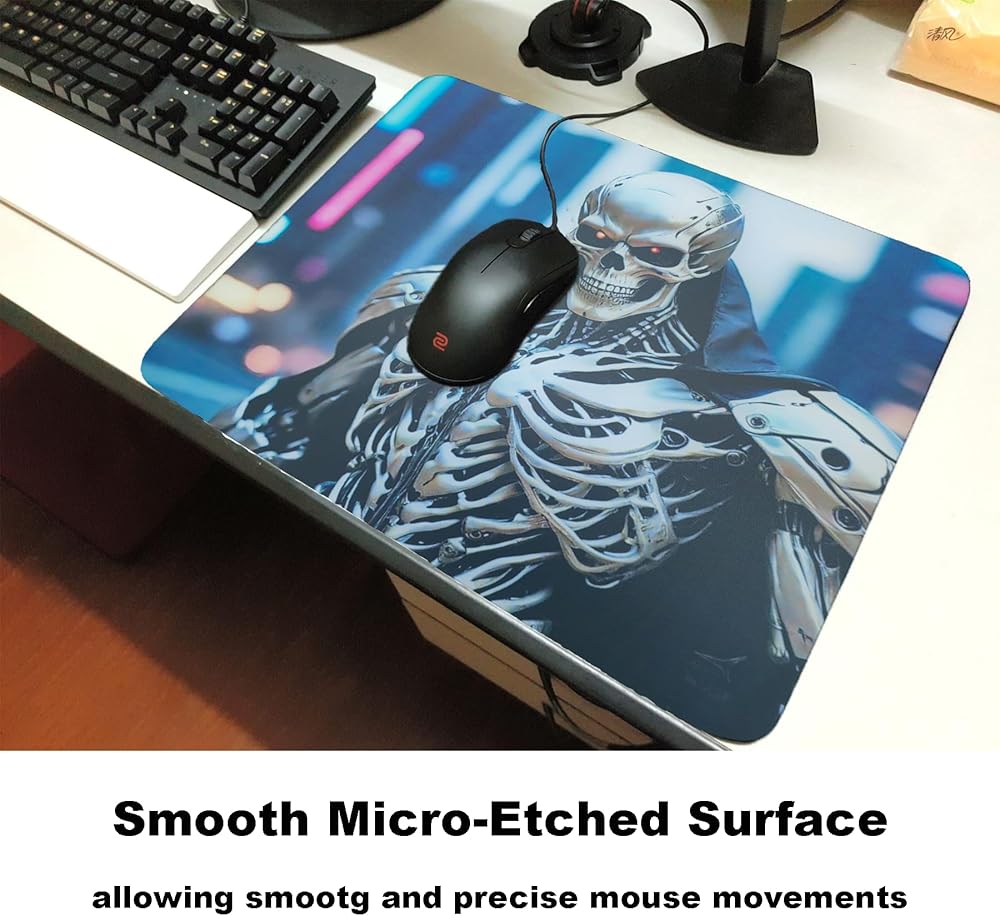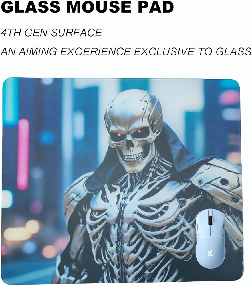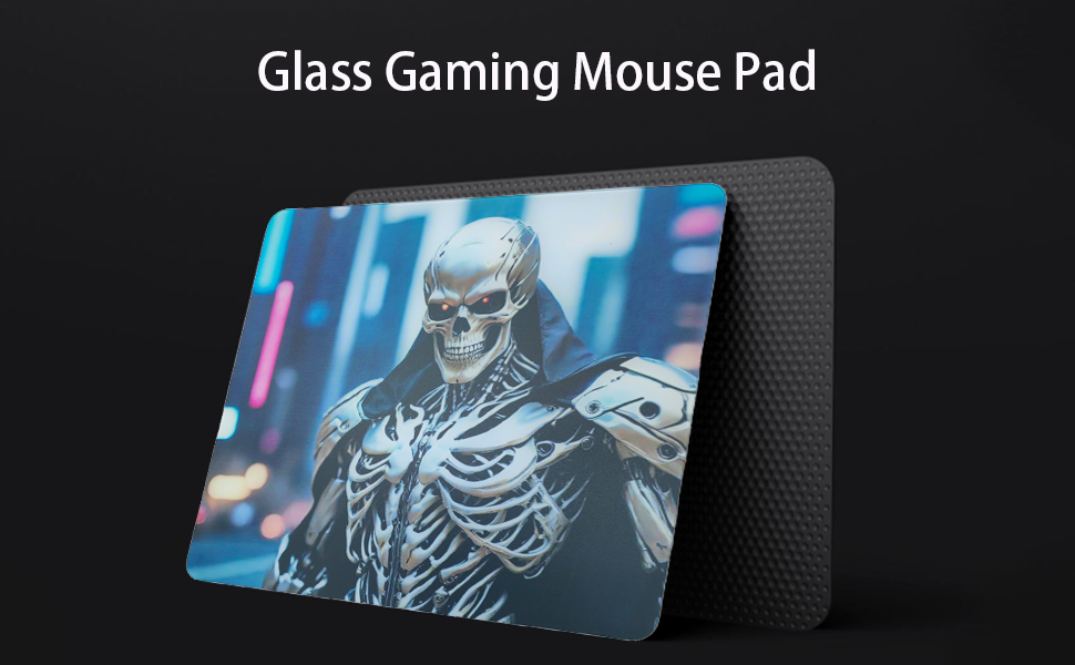 لوحة ماوس للألعاب من زجاج الجمجمة، سطح خاص لبساط الماوس الاحترافي مع دقة وسرعة محسنة، مقاومة للماء وسهلة التنظيف، سطح متين للألعاب عالية السرعة (13.8 بوصة × 11.8 بوصة)