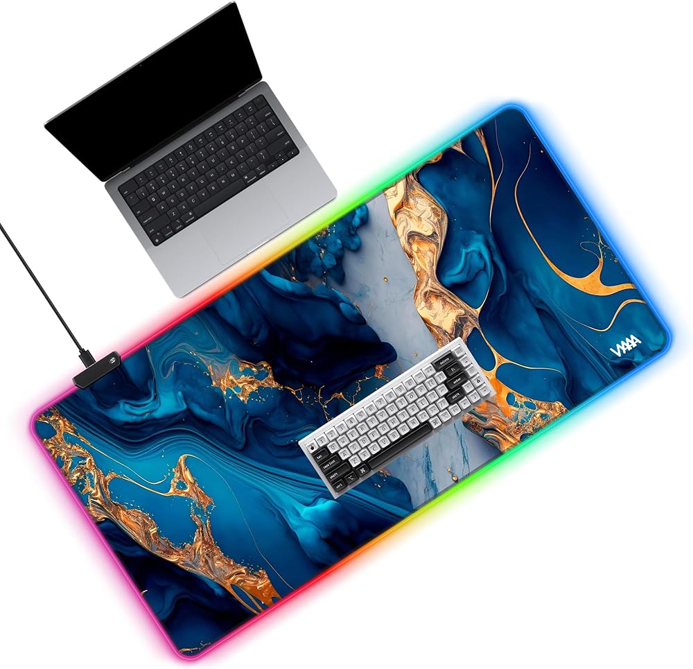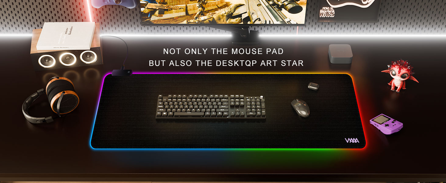 لوحة ماوس RGB كبيرة جدًا: يبلغ مقاس لوحة الماوس السوداء هذه 47.2 × 19.6 بوصة/100 × 50 سم، مما يجعلها أكبر حجمًا مقارنةً بوسادات الماوس المضيئة الأخرى. يمكنه استيعاب لوحات المفاتيح والفئران من أي حجم، مع ترك مساحة واسعة للأجهزة الأخرى مثل أجهزة الكمبيوتر المحمولة والشاشات.