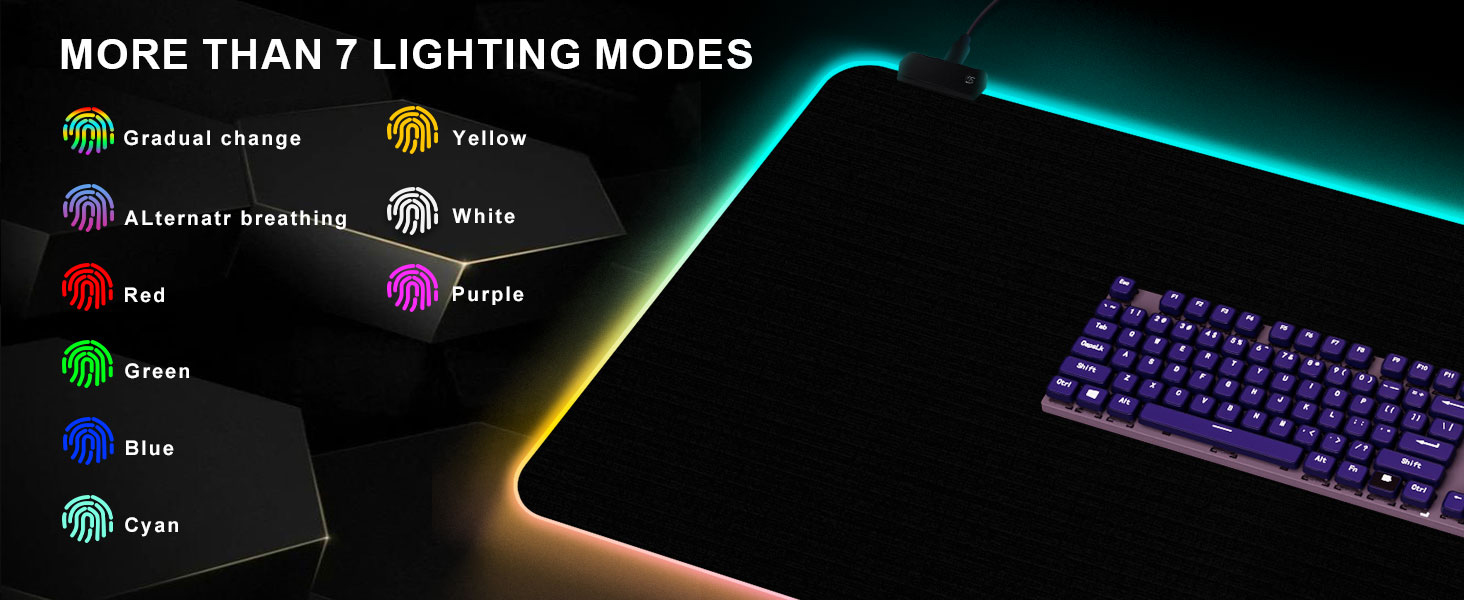 9 أوضاع إضاءة: تتميز لوحة الماوس المضيئة RGB بـ 9 أوضاع LED قابلة للتعديل (2 ديناميكي +7 ثابت). لوحة ماوس الألعاب السوداء هذه تعمل بمنفذ USB مع وظيفة التوصيل والتشغيل. التحكم بلمسة واحدة في أوضاع الإضاءة لخلق جو مميز بسرعة وسهولة أثناء اللعب أو العمل.