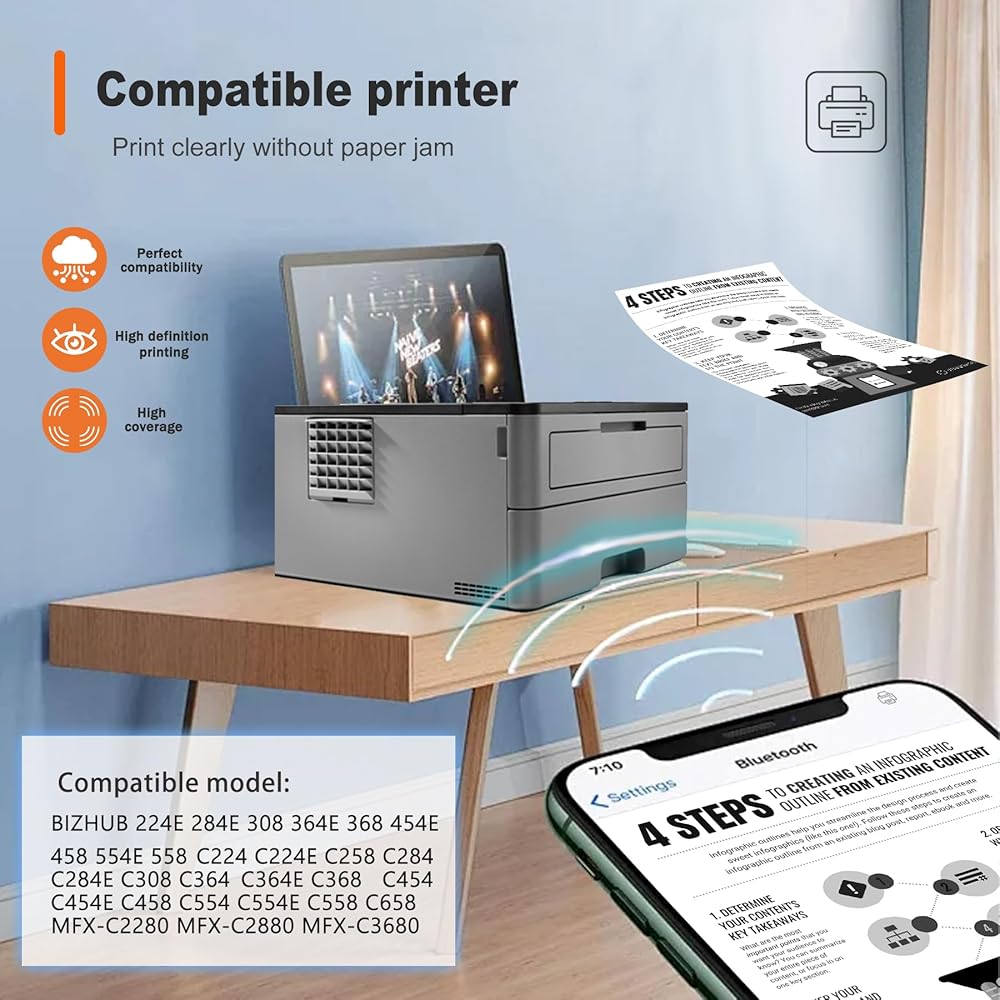 • This Unit works with: bizhub 224e 284e 308 364e 368 454e 458 554e 558 C224 C224e C258 C284 C284e C308 C364 C364e C368 C454 C454e C458 C554 C554e C558 C658 MFX-C2280 MFX-C2880 MFX-C3680 Toner Printers.