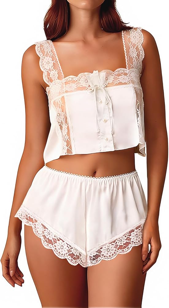 تصميم جذاب: تشتمل مجموعات الملابس الداخلية المصنوعة من الساتان على قميص داخلي يتميز بخط عنق مربع، وأشرطة سباغيتي قابلة للتعديل، وفتحة زر أمامية، وربطة عنق عند الصدر، في حين أن الشورتات المطابقة لها حزام خصر مرن مريح وحواشٍ من الدانتيل صدفي للحصول على صورة ظلية جذابة.