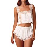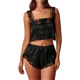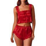 نسيج فاخر: مصنوع من قماش الساتان الحريري الفاخر مع زخرفة من الدانتيل الرقيق، يوفر طقم البيجامة المكون من قطعتين ملمسًا ناعمًا وخفيف الوزن على الجلد مع إضافة لمسة من الأناقة الرومانسية إلى مجموعة ملابس الاسترخاء الخاصة بك