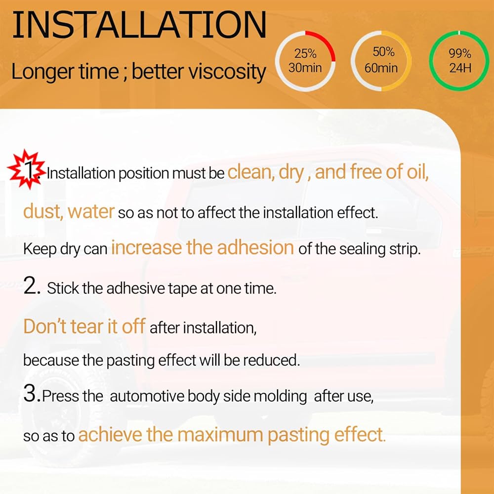 سهل التركيب: نظف سطح التثبيت، وقم بتمزيق الطبقة الحمراء والغشاء الواقي الشفاف، التركيب المباشر. يمكن قطع شرائط الزخرفة المطاطية بسهولة إلى أي طول تريده باستخدام المقص. (إنه مثالي لتطبيق DIY)