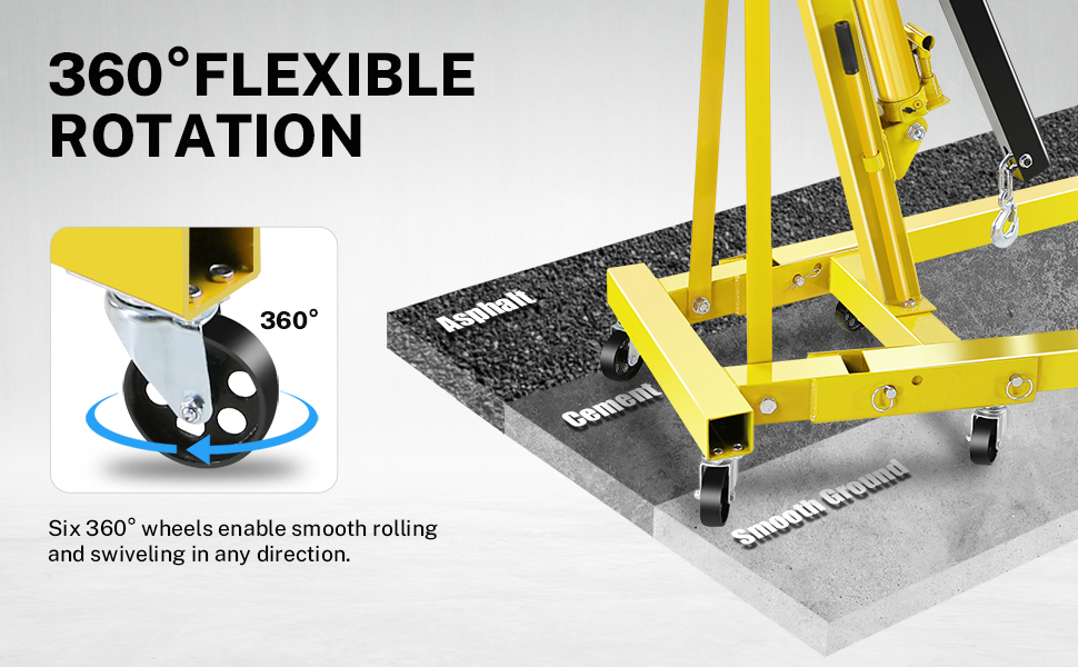 أمان وثبات فائقان: توفر الركائز القابلة للسحب، وقاعدة معززة، وعجلات دوارة بقفل 360 درجة تشغيلًا آمنًا ومستقرًا أثناء إصلاح المحرك أو النقل.