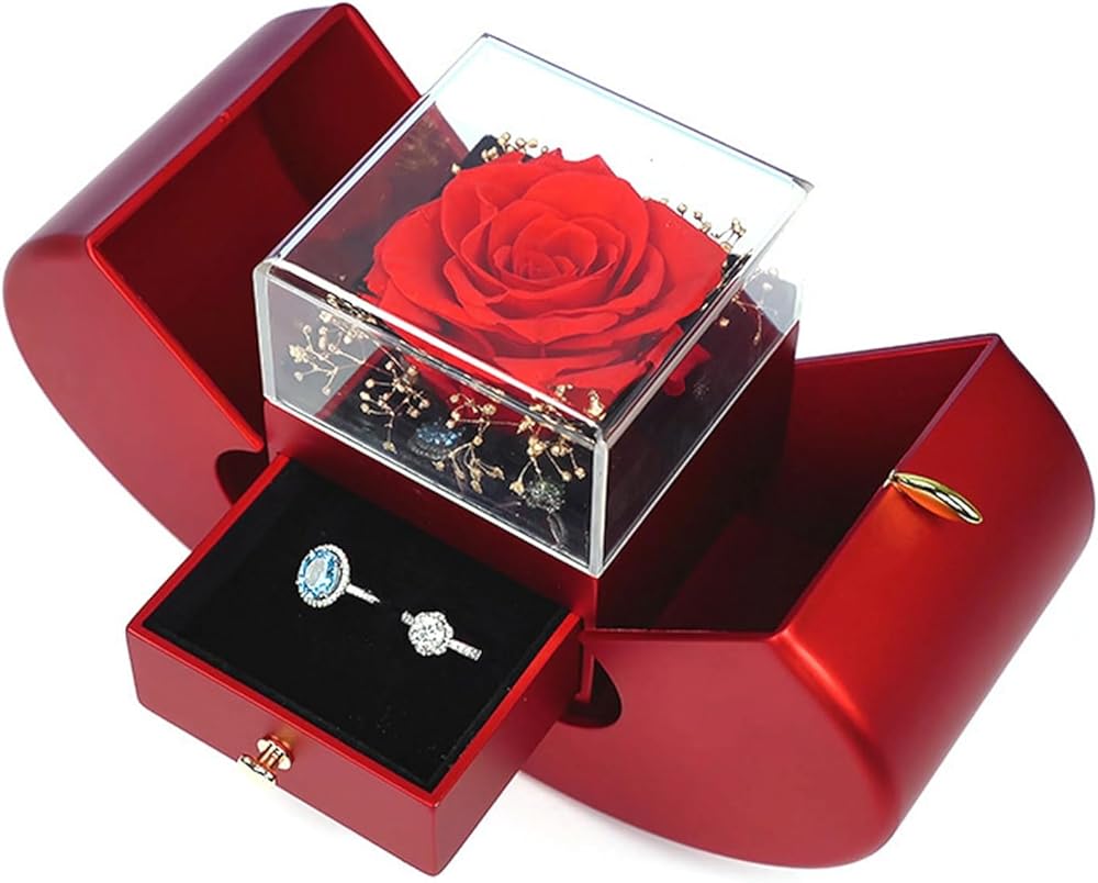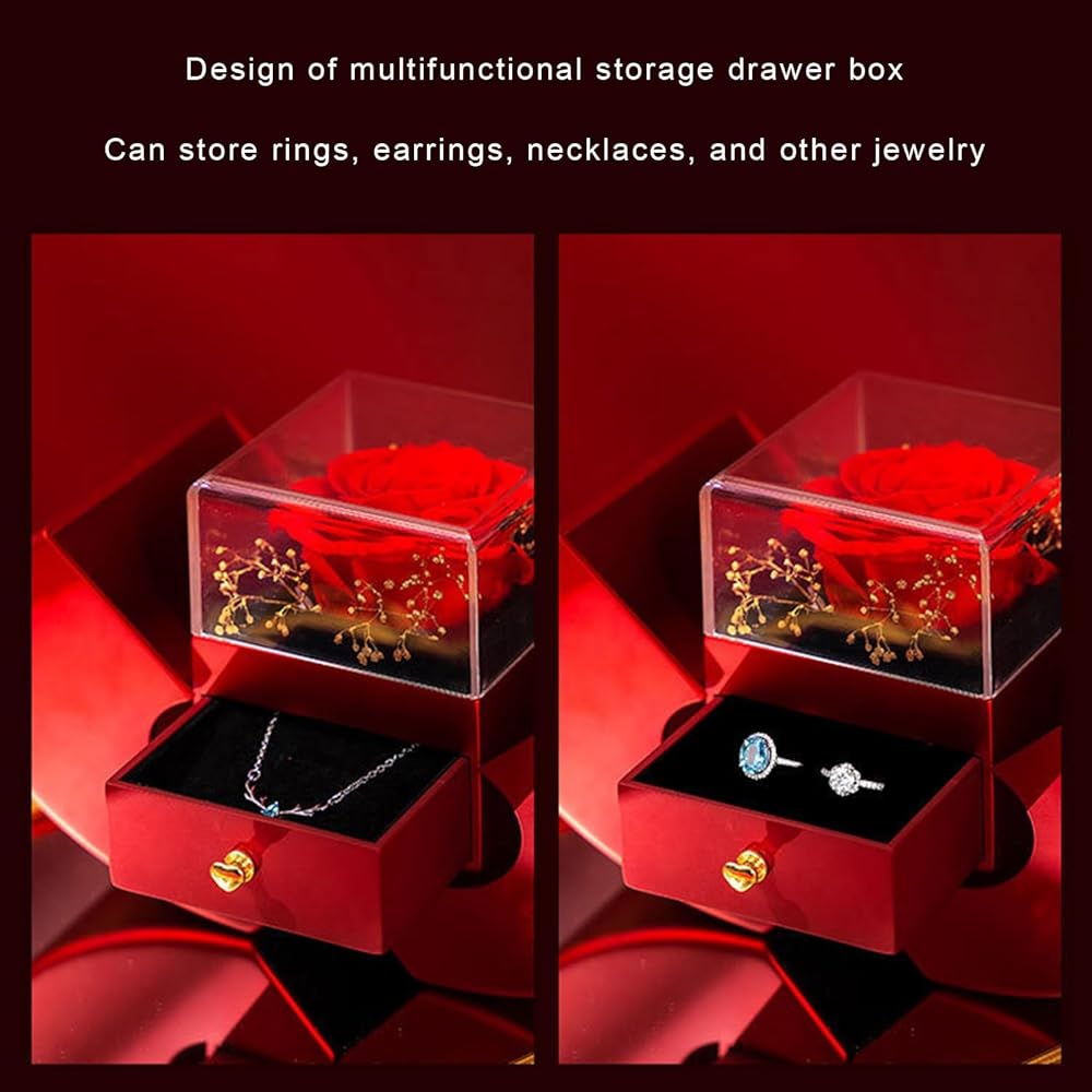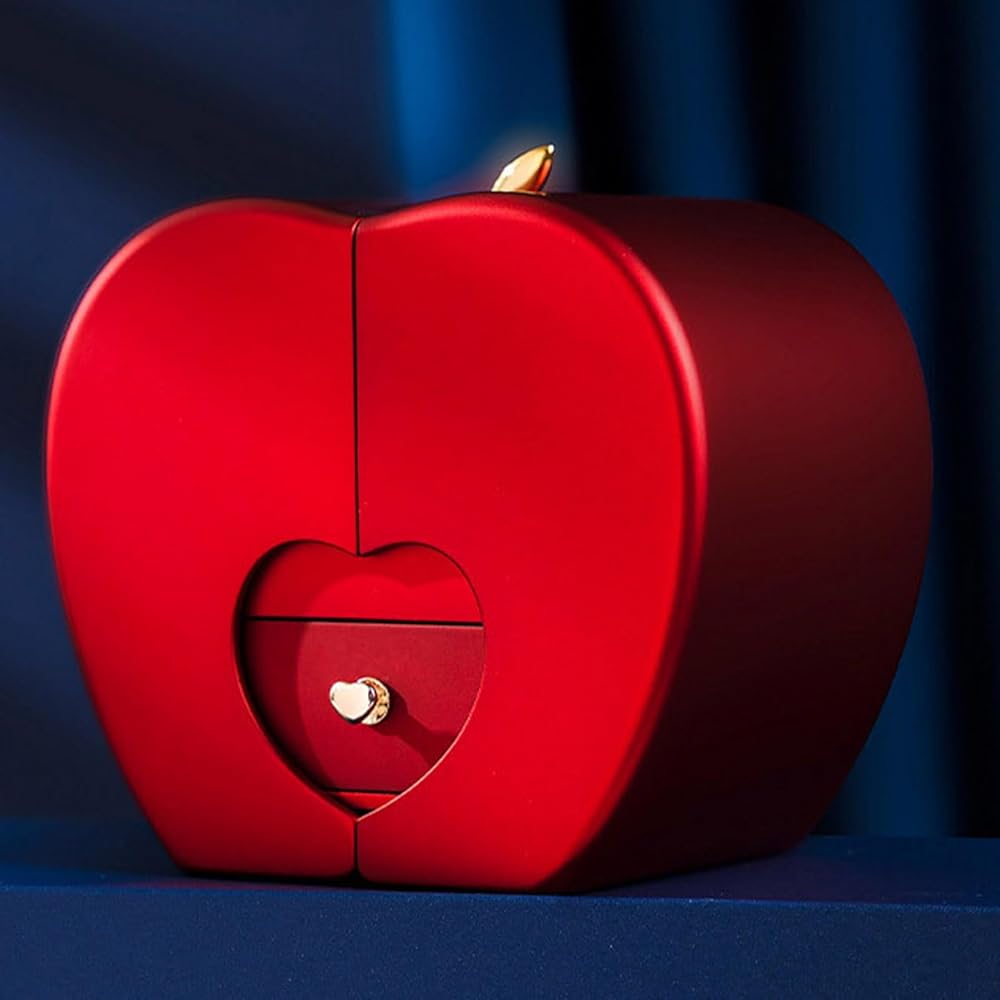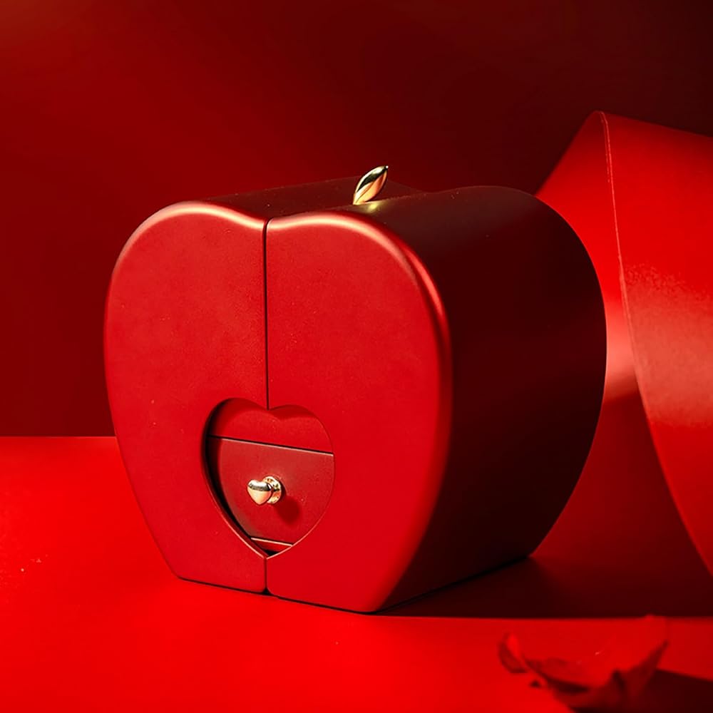 حامل المجوهرات صندوق المجوهرات صندوق تخزين المجوهرات الأنيق على شكل تفاحة قلادة حلقة مع زهرة الصابون طويلة الأمد لمهرجان عيد الميلاد الأحمر