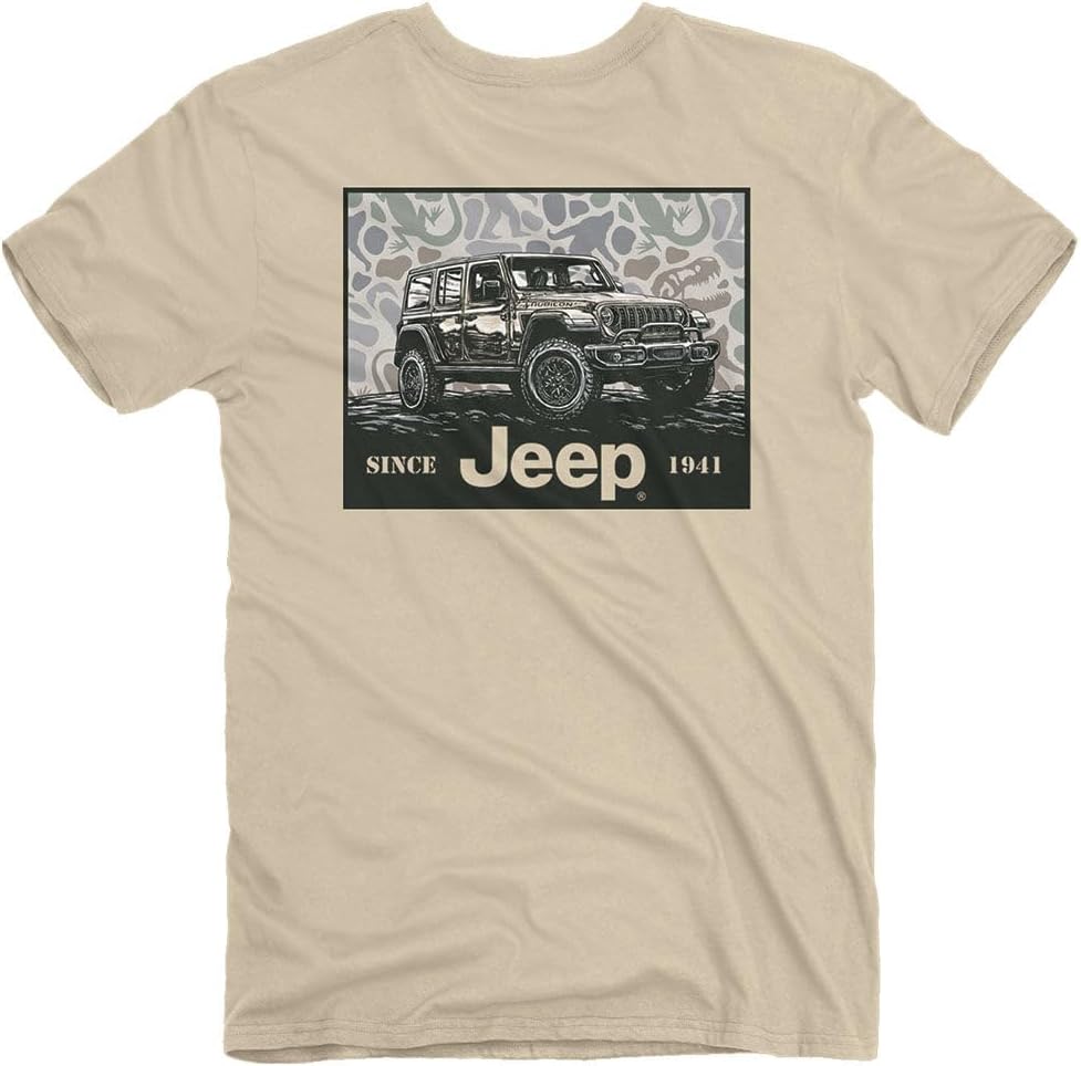 This cotton t-shirt features Wrangler Design styling and is made from 100% cotton for comfort and durability. The natural colorway works well with jeans, shorts, or casual wear. A classic inspired Jeep T-Shirt.
