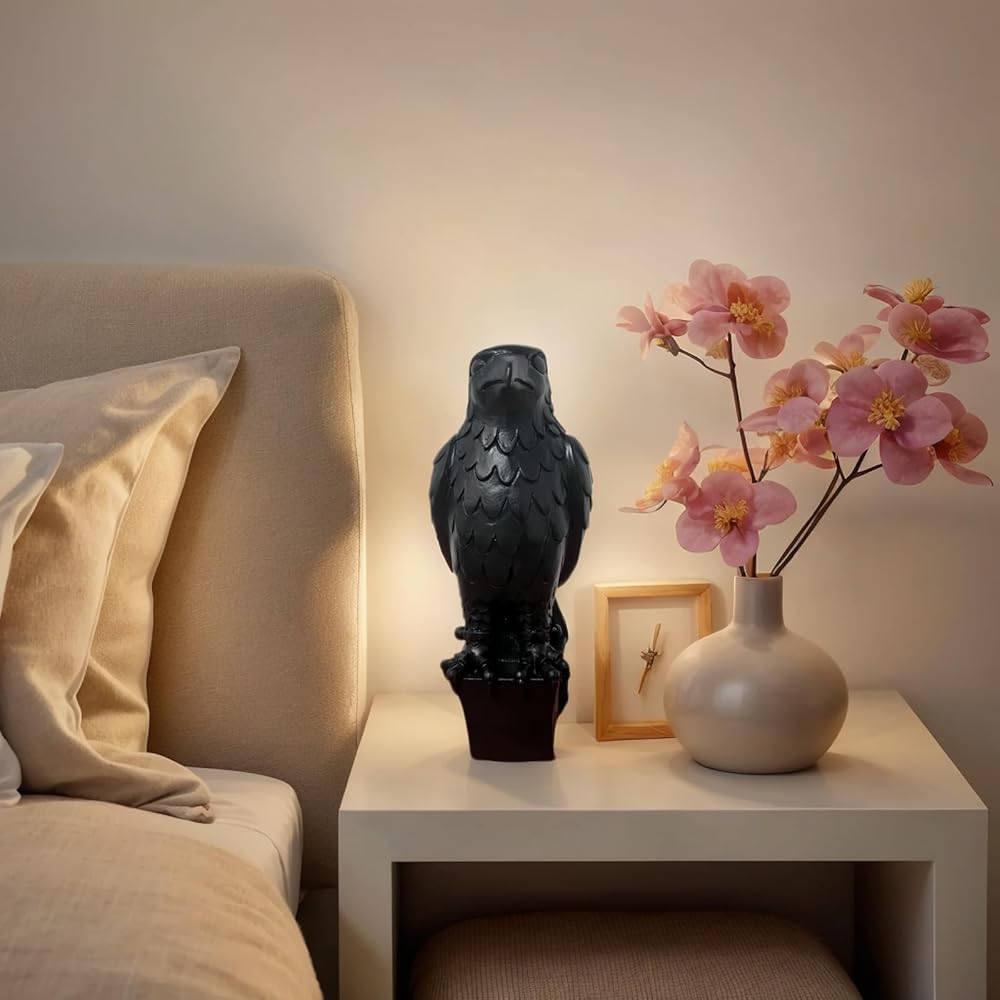 مصنوعة من الراتنج الأسود النقي، هذه القطعة تنضح بجو من الغموض والأناقة. تم تقديم الملمس الذي يشبه الريش وتفاصيل منقار النسر بشكل واضح، مع لمسة نهائية غير لامعة تشعر بالنعومة عند اللمس، متجاوزة منحوتات الراتنج العادية المتوفرة في السوق. ديكور متعدد الاستخدامات واختيار الهدايا - مثالي للمكاتب المنزلية، وأرفف الكتب، والحدائق، أو كهدية فريدة لهواة الجمع ومحبي الطيور وعشاق التاريخ.
