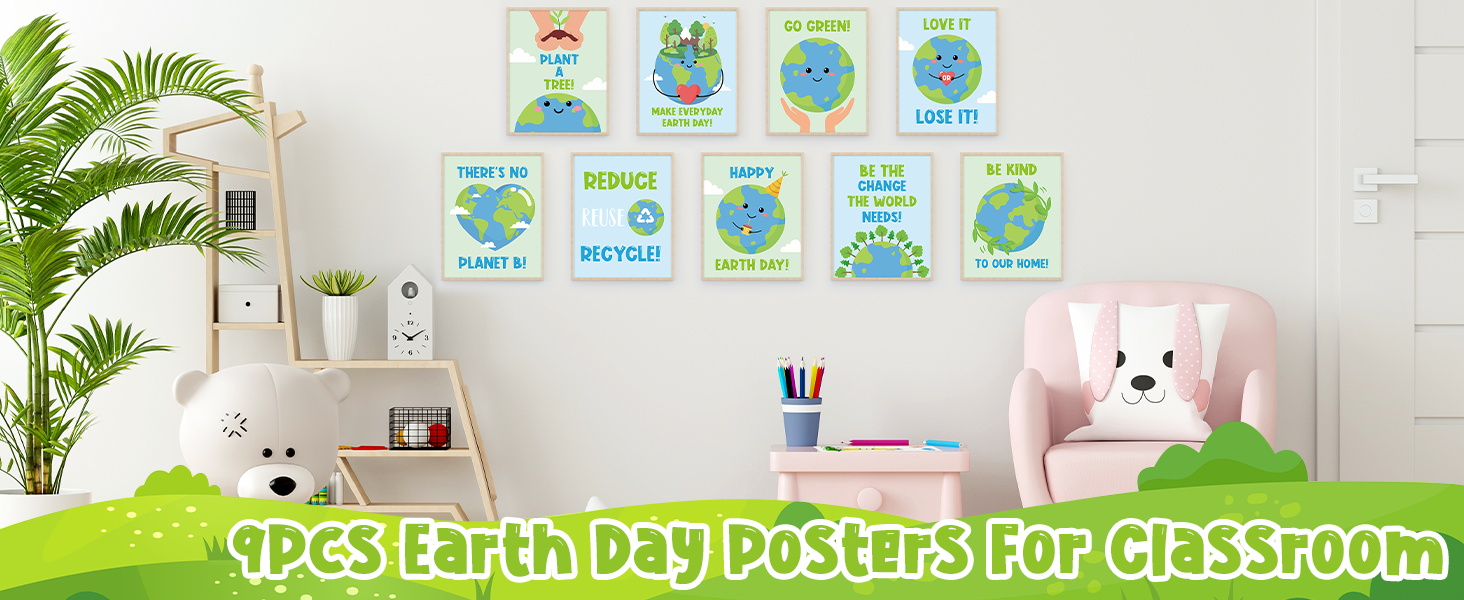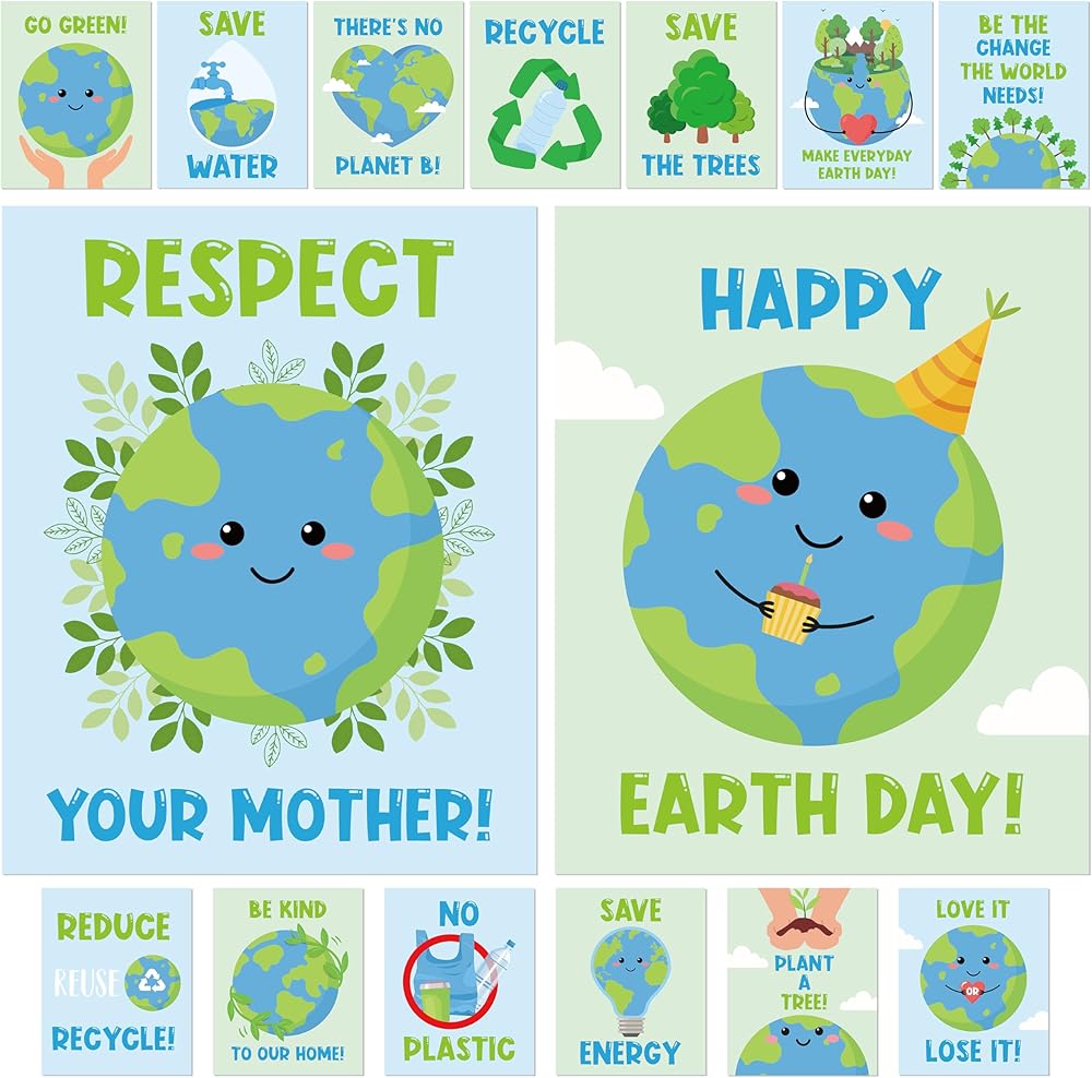ملصق يوم الأرض: تتميز مجموعة ملصقات يوم الأرض هذه المكونة من 9 قطع بتسعة أنماط فريدة، يعرض كل منها صور يوم الأرض النابضة بالحياة ورسائل تحفيزية. مثالية لخلق جو احتفالي وتعليمي في حفلتك أو مناسبتك التي تحمل عنوان الحفاظ على الطبيعة.