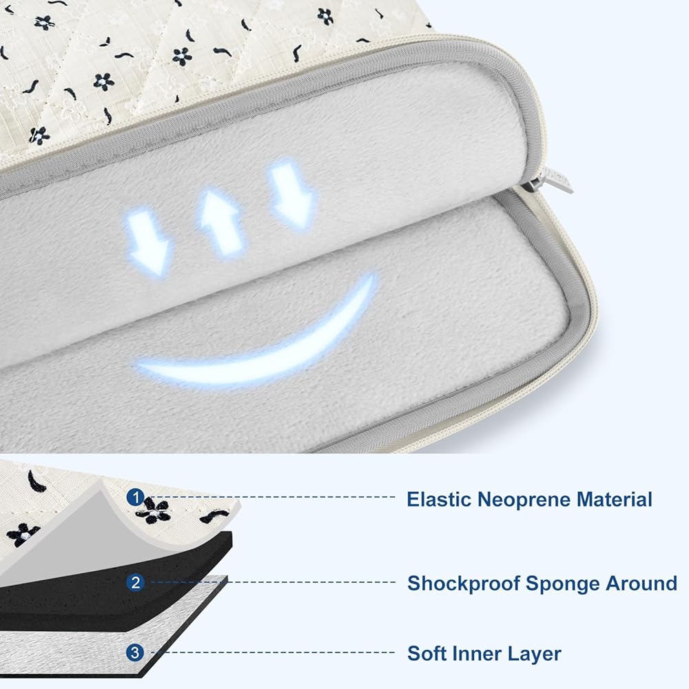 مصنوعة من مادة البوليستر المنتفخة والمربعة، والسحابات العلوية المفتوحة تنزلق بسلاسة وتسمح بالوصول السهل إلى جهازك. نحيف وخفيف الوزن، ولا يزيد حجم جهازك ويمكن وضعه بسهولة في حقيبتك أو حقيبة الظهر أو أي حقيبة أخرى.