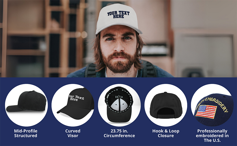 Adjustable Closure: Our custom baseball cap comes with a pre-curved bill, anti-sweat band, and a reliable hook-and-loop closure, providing a secure, customizable fit for all-day comfort.