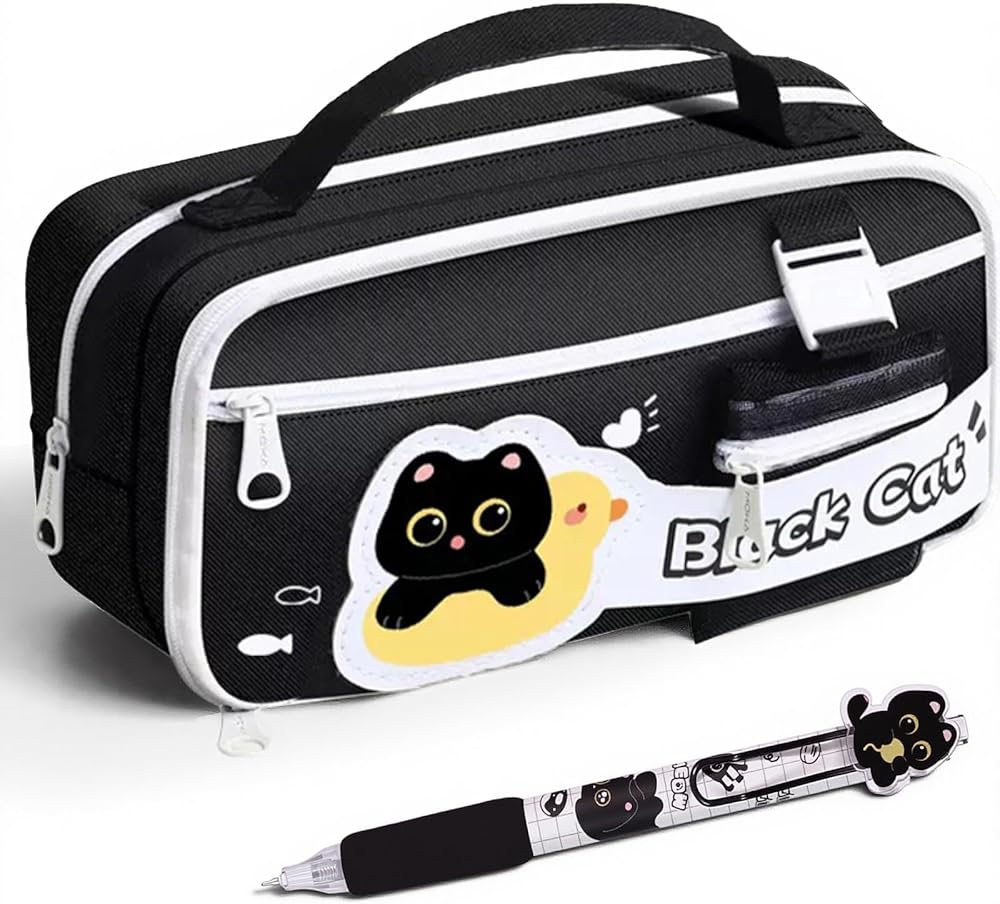 Cat Pen: The black cute Cat gel ink pens are made of plastic material.The package includes cat pen,cat pencil storage box.