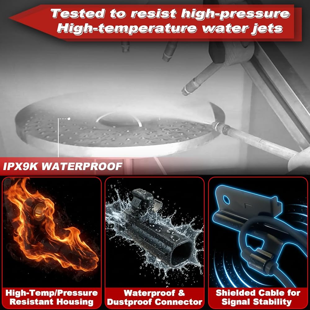 【حماية ممتازة ضد الماء - تم اختبار IPX9K】اجتاز مستشعر السرعة اختبارات نفث الماء ذات الضغط العالي ودرجة الحرارة العالية وفقًا لمعايير IPX9K. يمكن الاعتماد عليه في ظروف المطر أو الطين أو غسيل السيارات.