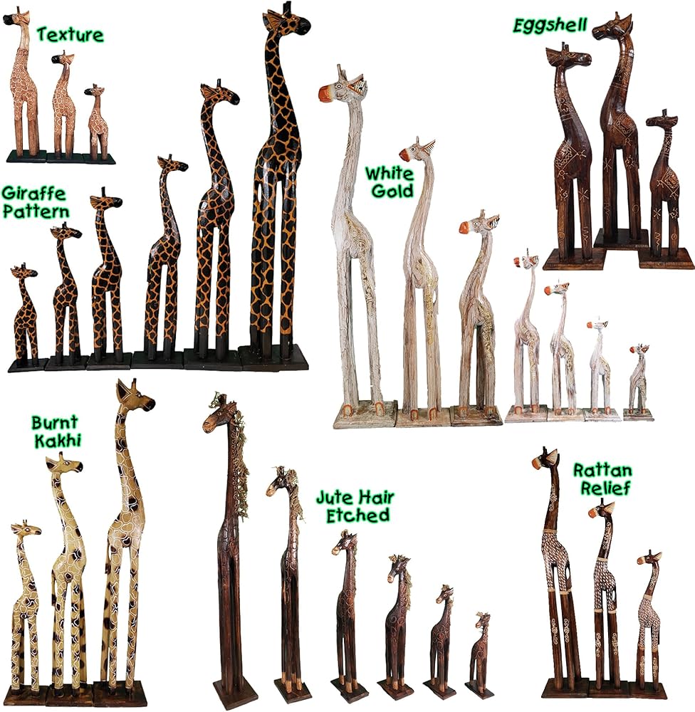 تماثيل الزرافة الطويلة المصنوعة يدويًا من الخشب الأصلي من Albesia بتصميمات وأحجام مذهلة. جمال الطبيعة الرشيق يجتاح ديكورات منزل السفاري في جميع المناسبات. (نمط الزرافة، 24 بوصة)