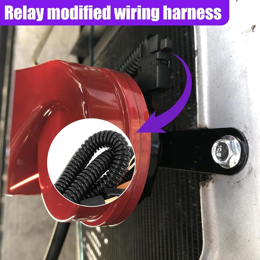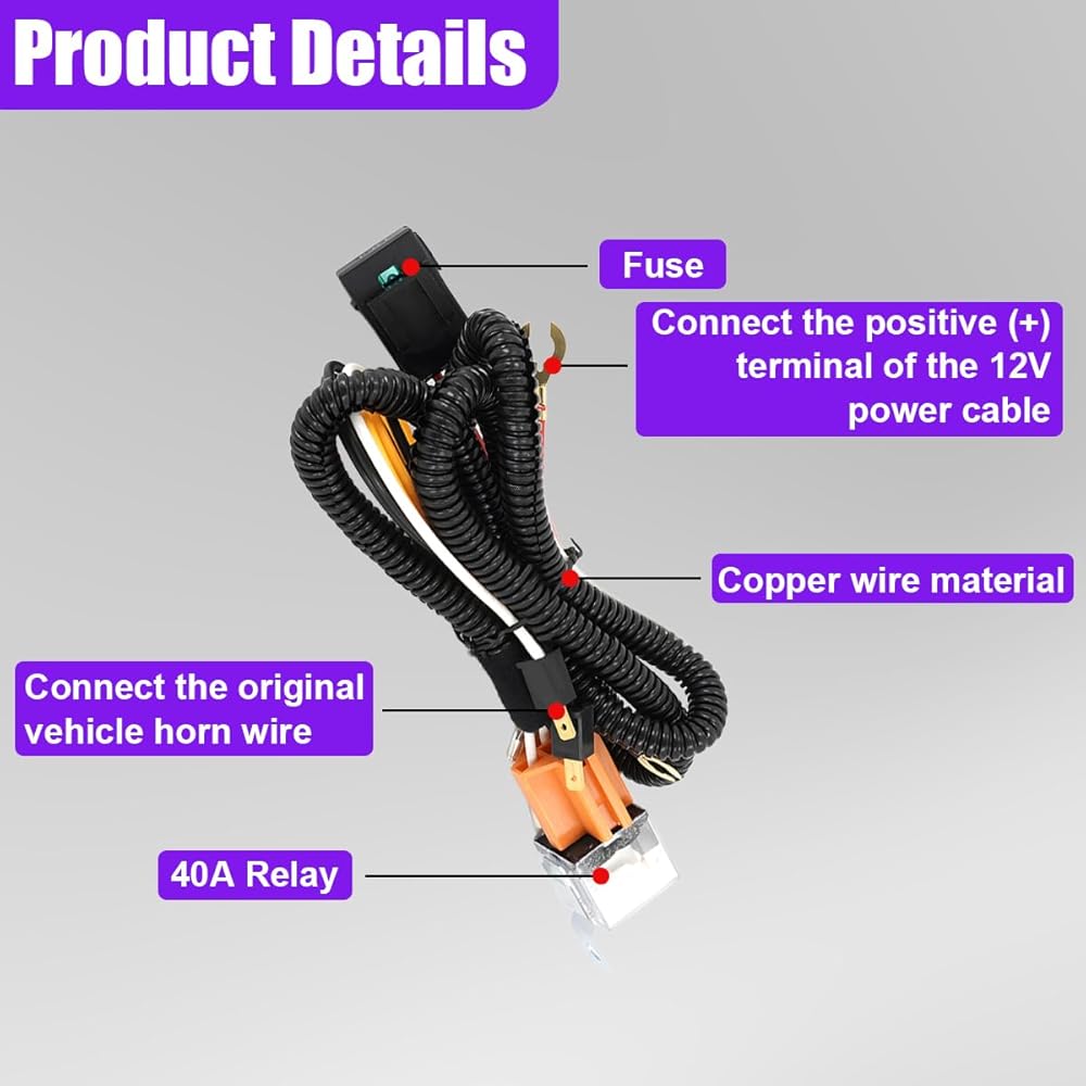 【Easy to Use】: The 12V car relay harness includes a relay, fuse, wires, and clearly marked connectors. The installation process requires no complex cutting or welding procedures. By distinguishing the wire harness interfaces through colors, it achieves plug-and-play functionality. Simply connect the positive and negative poles of the battery and the horn trigger wire to complete the installation, saving time and effort.