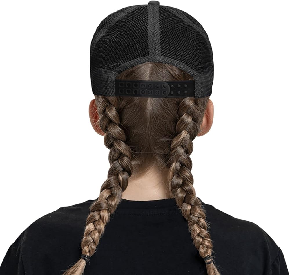 قفل بالإطباق -- مشبك خلفي بلاستيكي قابل للتعديل، مقاس واحد يناسب معظم أحجام رؤوس الأطفال، مناسب للأطفال من سن 3 إلى 13 عامًا. فتحة لعمل الكعك والذيول وغيرها من تسريحات الشعر الجميلة