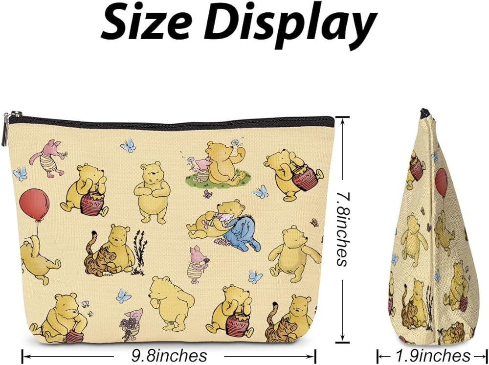 Cute Design: This cosmetic bag adopts the cute Winnie the Pooh design, and the combination of cartoon patterns, highlighting the cuteness. There are many styles to choose from, there is always one suitable for you.