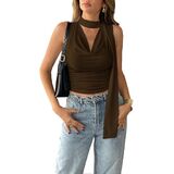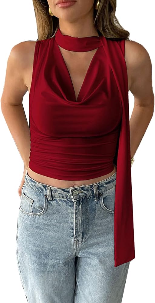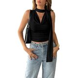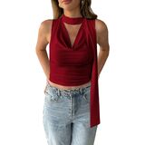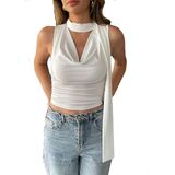 النمط: مثير، رقبة عميقة على شكل حرف V، ثنيات أمامية، رقبة على شكل بقرة، رسن، لون سادة سادة، بدون أكمام، مكشكش، طول قصير، مقاس نحيف، كاجوال، بلوفر، قميص قصير صيفي Y2K، مع وشاح، عصري ومثير للنساء والفتيات المراهقات