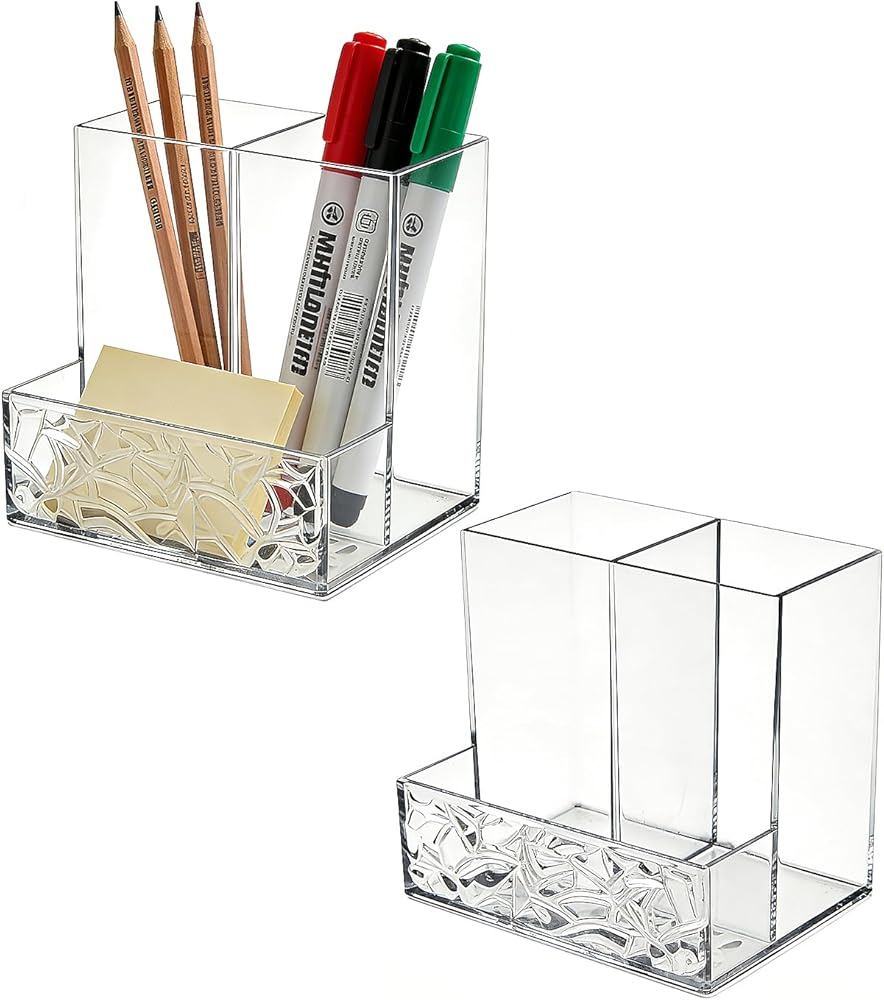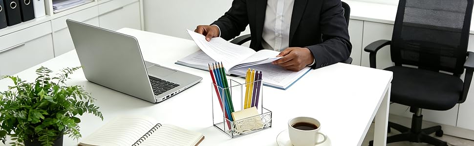تصميم مكون من 3 أقسام لتنظيم أنيق: يتميز بـ 3 أقسام مقسمة لفرز الأقلام وأقلام الرصاص وأقلام التحديد وفرش المكياج وأجهزة التحكم عن بعد والإكسسوارات الصغيرة. حافظ على سطح المكتب الخاص بك مرتبًا وفعالاً، وسهل الوصول إلى ما تحتاجه.