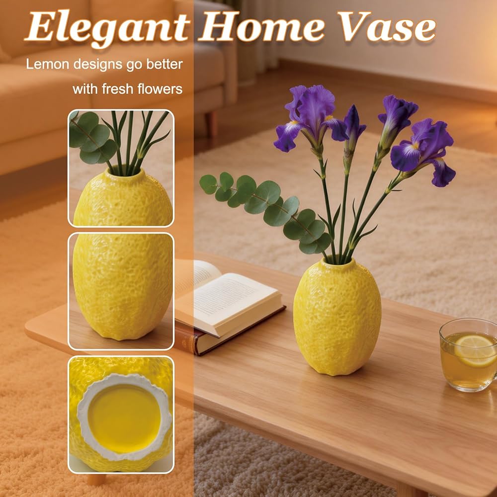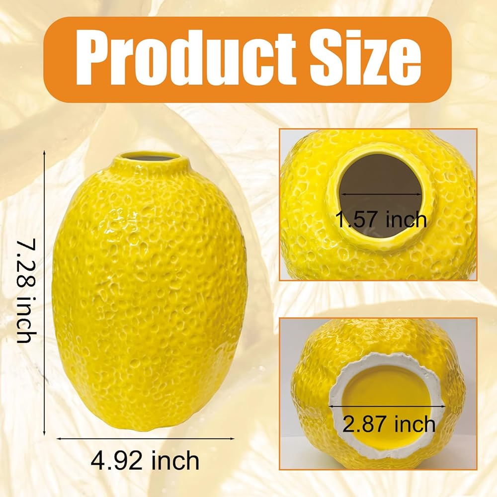 Perfect Dimensions for Versatile Placement: Measuring 7.28 inches in height, 4.92 inches in width, and with a 1.57-inch opening. Its versatile size makes it suitable for various settings, from your living room decor to bedroom decor, or even as a charming kitchen decor item. The lemon-shaped vase is lightweight and easy to place on any table, shelf, or desk