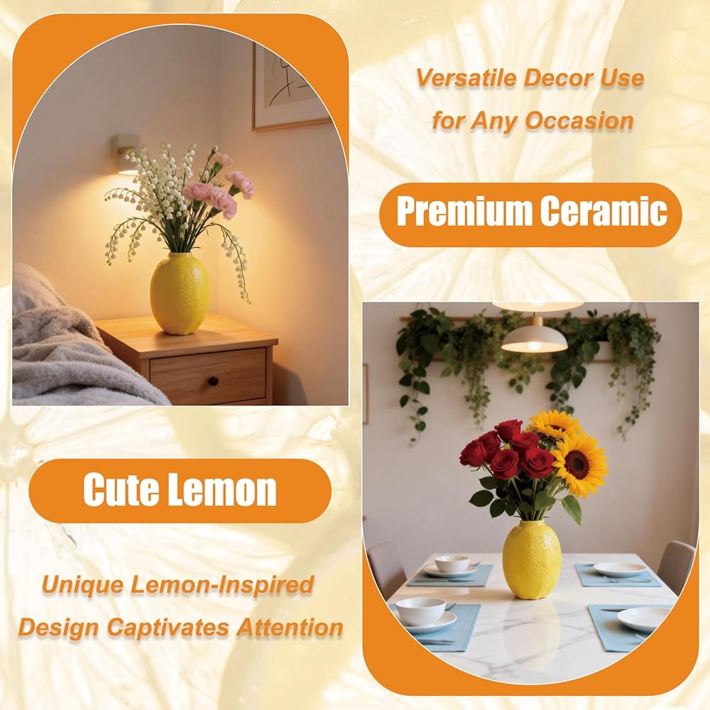 Premium Ceramic Construction: Crafted from high-quality ceramic, this flower vase is built to last. The sturdy material ensures that your decorative ceramic piece remains intact and beautiful for years to come. This lemon vase is not only a stunning decorative item but also a reliable and enduring addition to your home or office