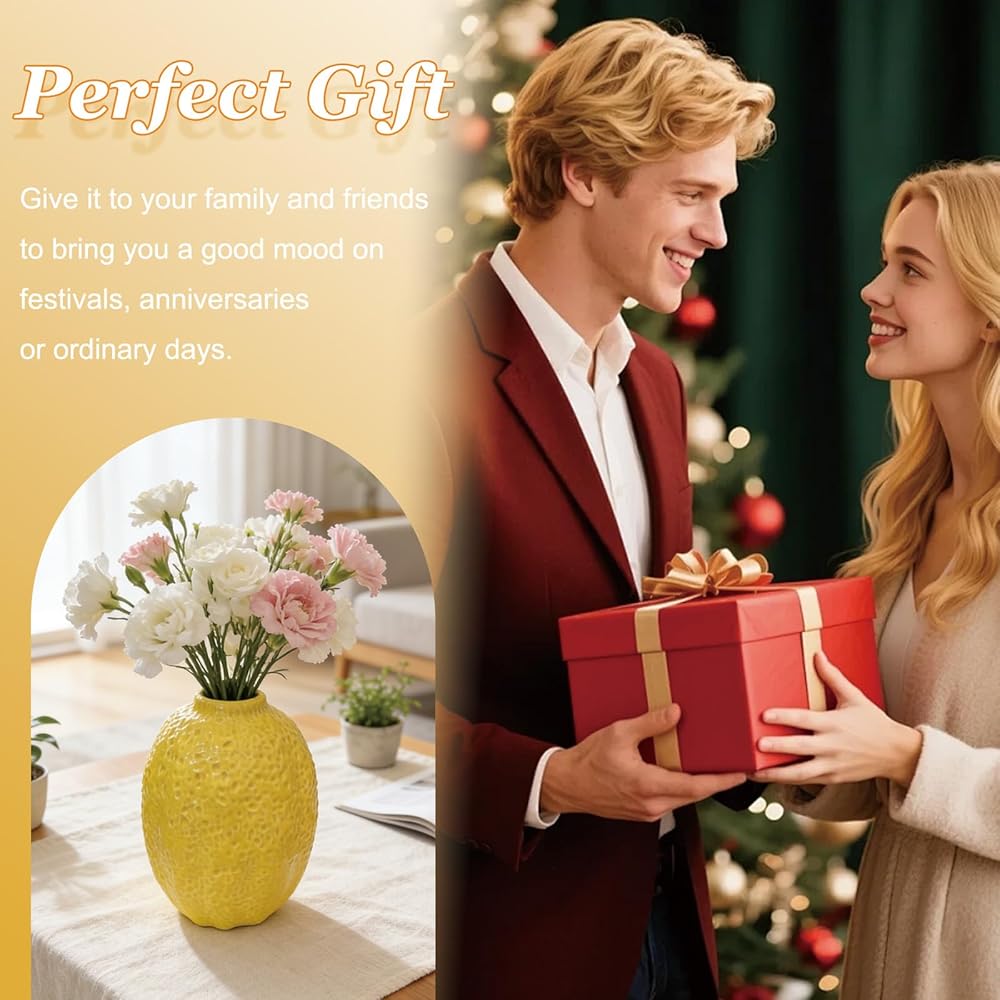 Eye-Catching Texture Enhance Any Space: The standout feature of this lemon ceramic vase is its unique textured surface adds depth and interest, while the bright hue brings energy and positivity to any room. Place this decorative flower vase in your living room, on your office table, or as part of your home accessories collection to instantly enhance the aesthetic appeal of your space
