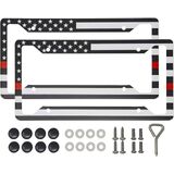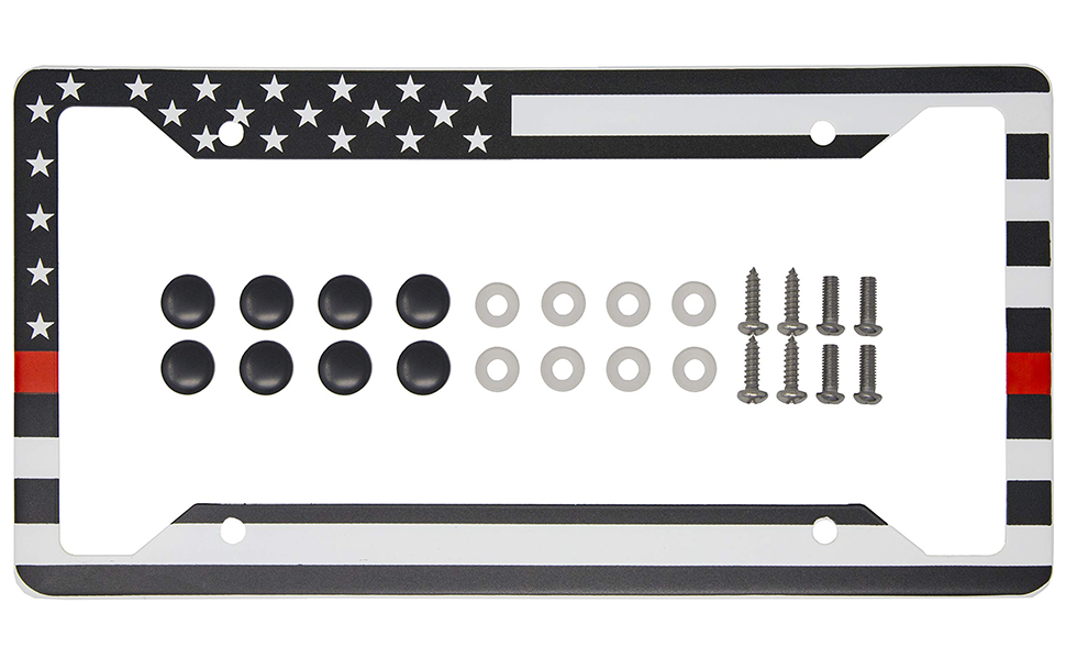 𝗕𝗹𝗮𝗰𝗸 𝗮𝗻𝗱 𝗪𝗵𝗶𝘁𝗲 𝗧𝗵𝗶𝗻 𝗥𝗲𝗱 𝗟𝗶𝗻𝗲 𝗔𝗺𝗲𝗿𝗶𝗰𝗮𝗻 (𝟮 𝗽𝗮𝗰𝗞) إطار لوحة ترخيص العلم، للأمام أو الخلف. الفولاذ المقاوم للصدأ عالي الجودة 304 درجة؛ لن الصدأ أو التآكل. يتضمن أيضًا براغي وأغطية.