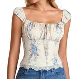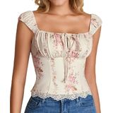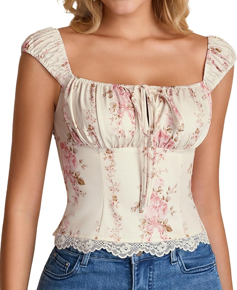 قمصان علوية لطيفة للنساء: قميص y2k هذا عصري - للأمام وأنثوي، وطبعات الأزهار ولمسات الدانتيل تمنحه إحساسًا مرحًا وربيعيًا - صيفيًا، بينما يبقيه الطول القصير عصريًا. يتناسب جيدًا مع الجينز والتنانير والسراويل القصيرة