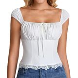تصميم لافت للنظر: قمصان زهرية للنساء، قمصان كورسيه للنساء، قمصان صدرية للنساء، قمصان صغيرة للنساء، تتميز هذه السترة برقبة مربعة، وتفاصيل ربطة أمامية، وزخرفة من الدانتيل لإضفاء مظهر لطيف، مع ظهر مدخن يوفر تمددًا رائعًا ليناسب مختلف مقاسات الصدر والخصر