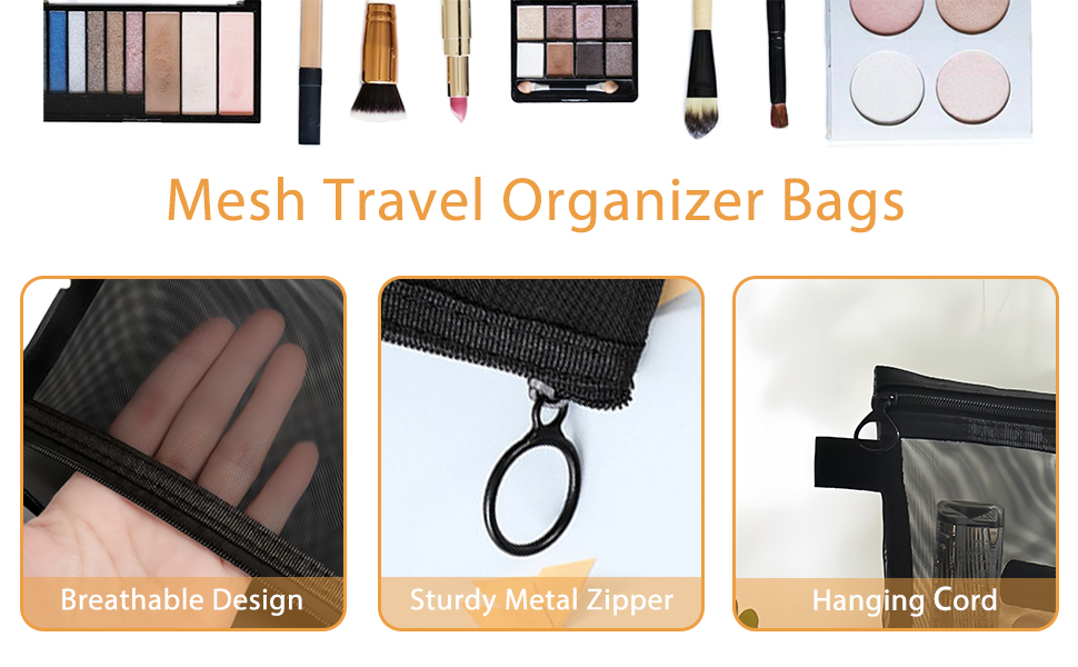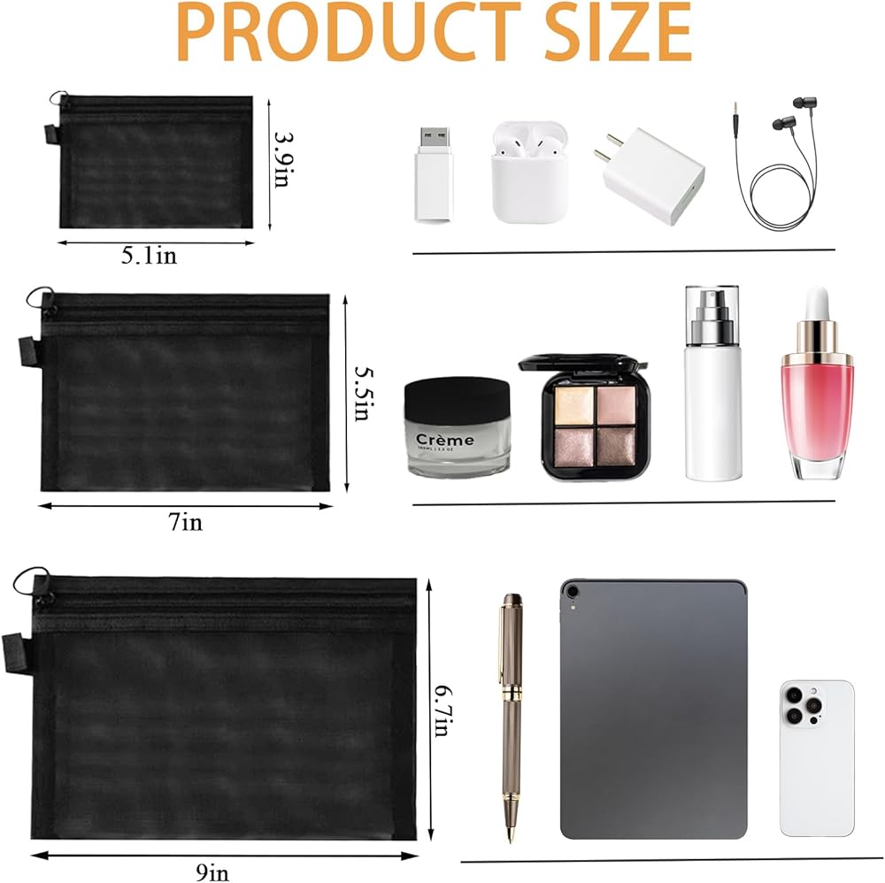 • مقاسات متعددة: تحتوي هذه المجموعة على 3 قطع حقائب مكياج شبكية بأحجام مختلفة، مثالية لتنظيم جميع ضرورياتك. يبلغ مقاس أكبر حقيبة 9 × 6.7 بوصة، والحجم المتوسط 7 × 5.5 بوصة، والأصغر 5.1 × 3.9 بوصة، وكلها كافية لتلبية احتياجاتك المختلفة.