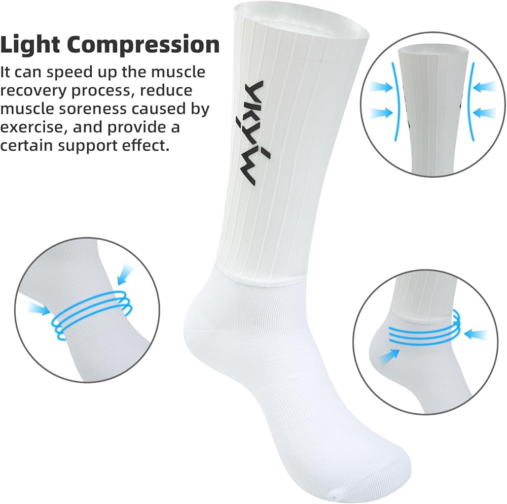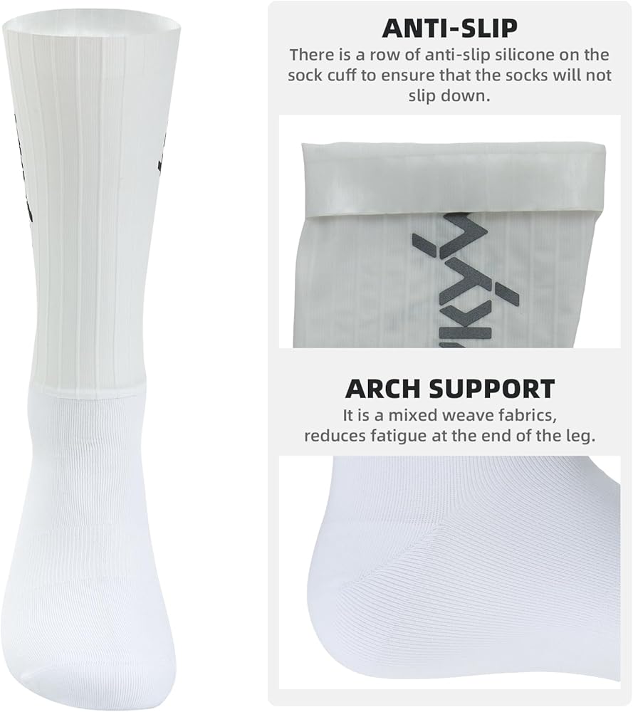 جوارب Aero الضاغطة: تتميز جوارب ركوب الدراجات بالكمية المناسبة من دعم ضغط الساق والكاحل والقوس، مما يمنح جوارب mtb تجربة ارتداء مريحة. وتحمي أقدامنا بشكل أفضل من التشنج والتعب والتورم وتساعد على تعافي العضلات.