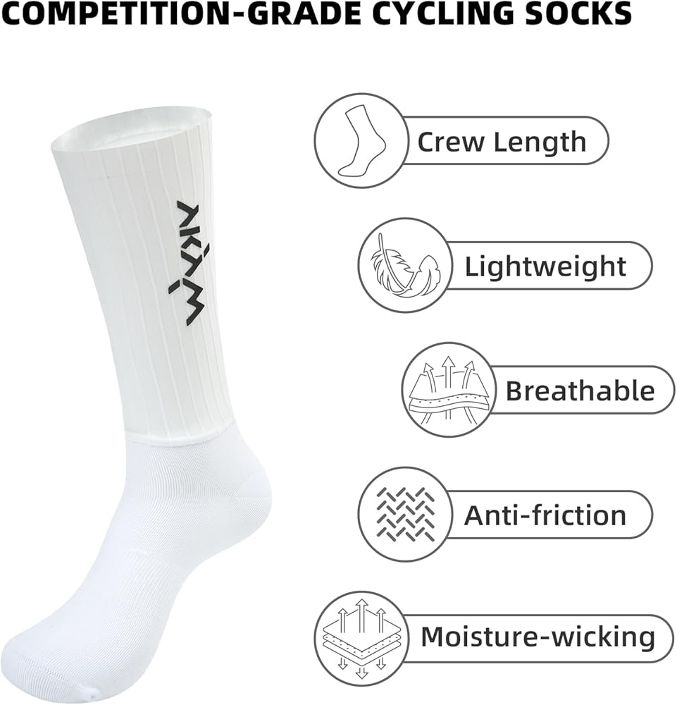 جوارب ركوب الدراجات المخصصة للمنافسة: مصنوعة من نسيج فاخر بدرجة المنافسة، جوارب ركوب الدراجات لدينا جيدة التهوية وخفيفة الوزن وسريعة الجفاف، والتي يمكن أن تمتص الرطوبة. إنها توفر ملاءمة دقيقة وتقلل من مقاومة الرياح، مثالية لمتطلبات ركوب الدراجات المكثفة.