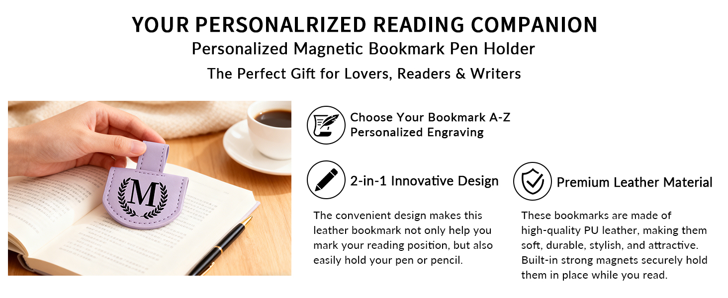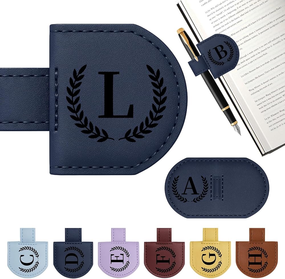 علامة مرجعية لحامل القلم الجلدي المغناطيسي - قم بتخصيص الإشارة المرجعية المغناطيسية الخاصة بك بأحرف A-Z أو اسم محفور، مما يجعلها ملحقًا فريدًا للقراء والكتاب والطلاب. مثالية لإضافة لمسة شخصية إلى قراءتك