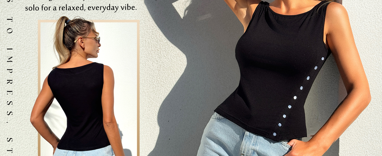 لا تدع حرارة الصيف تقبض عليك وأنت غير مستعد. تعتبر القمصان النسائية المضلعة من أساسيات الصيف المثالية، وهي مصممة لتمنحك شعورًا بالانتعاش والأناقة. القماش الناعم لطيف على البشرة، كما تضيف ميزة الزر الجانبي لمسة فريدة إلى خزانة ملابسك الصيفية. سواء كنت متجهًا إلى الشاطئ، أو تقوم بمهام، أو تستمتع بقضاء ليلة في الخارج، فإن هذا القميص بدون أكمام هو إضافة متعددة الاستخدامات لمجموعتك الصيفية.