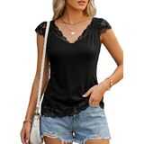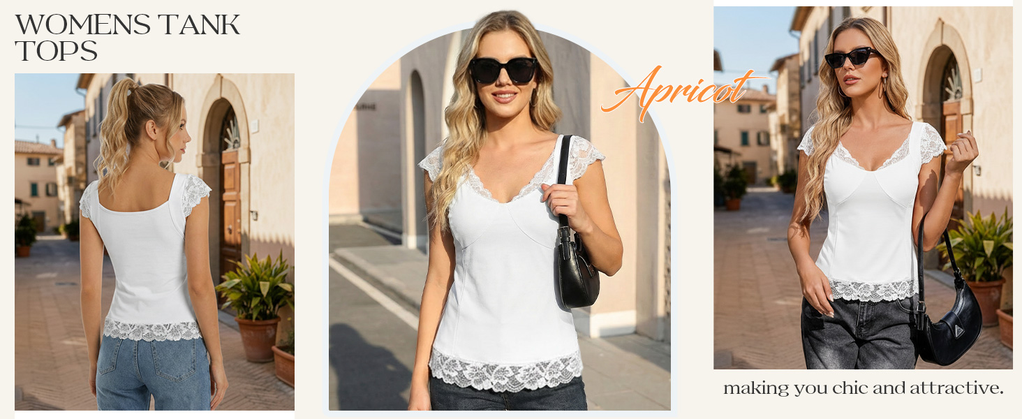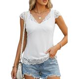 [قماش ناعم وتفاصيل دانتيل أنيقة] قمصان بدون أكمام من الدانتيل للسيدات خفيفة الوزن ومسامية ومرنة، وتتميز بخط رقبة على شكل حرف V رقيق مزين بدانتيل زهور ناعم ممتاز. زخرفة أنيقة تمتد إلى الحاشية والأكمام الفريدة من نوعها، بدون الحكة