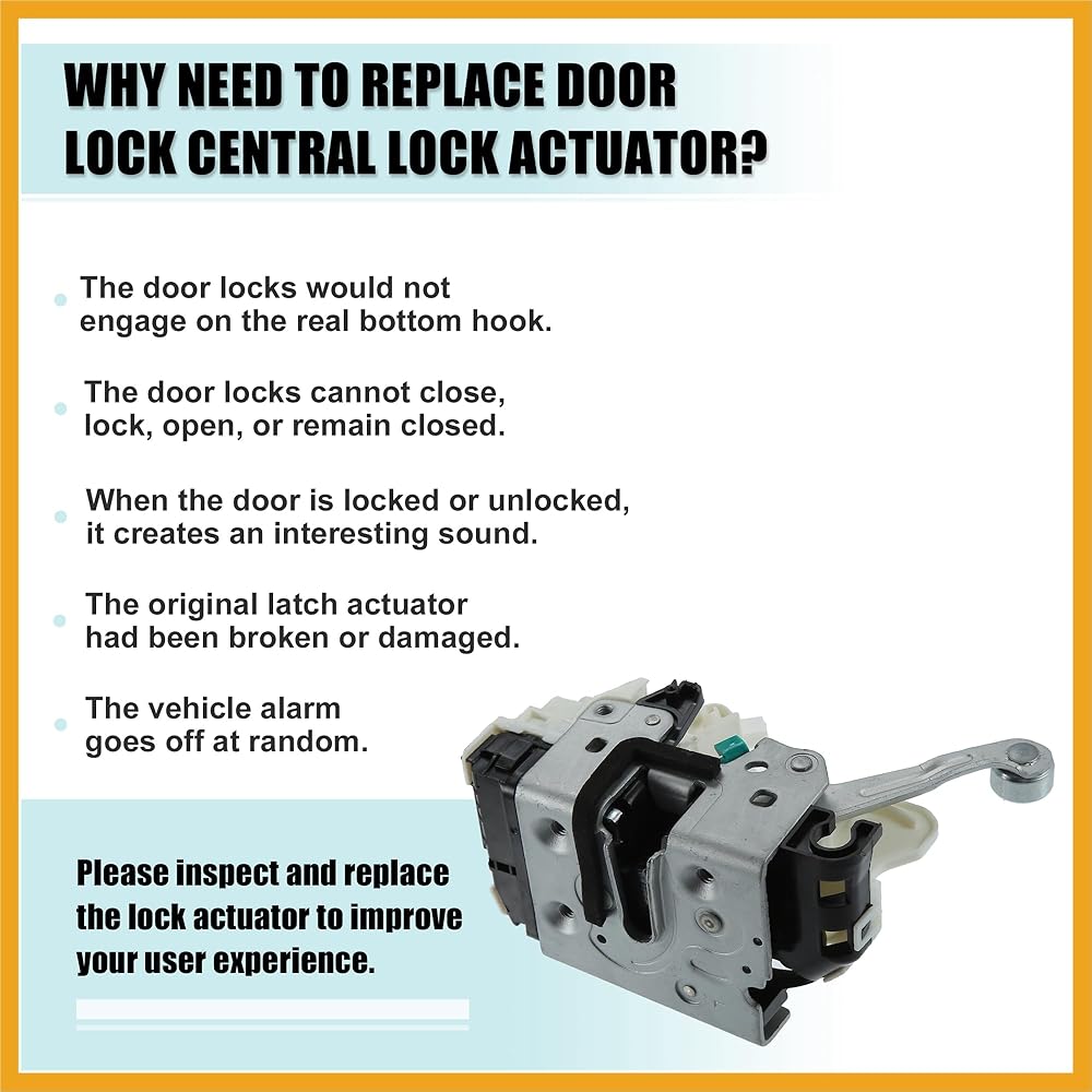 Well Designed: Easy Installation: Simply plug and play. Replace your outdated or broken lock actuator, assist in resolving door remote open issues, and restore the vehicle's door lock to normal functionality. If the door has remote open/latch close/lock/unlock issues, please repair the actuator.