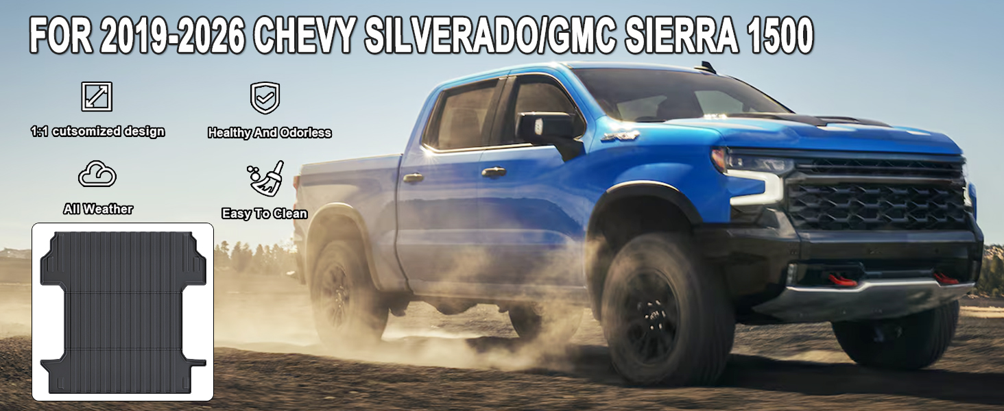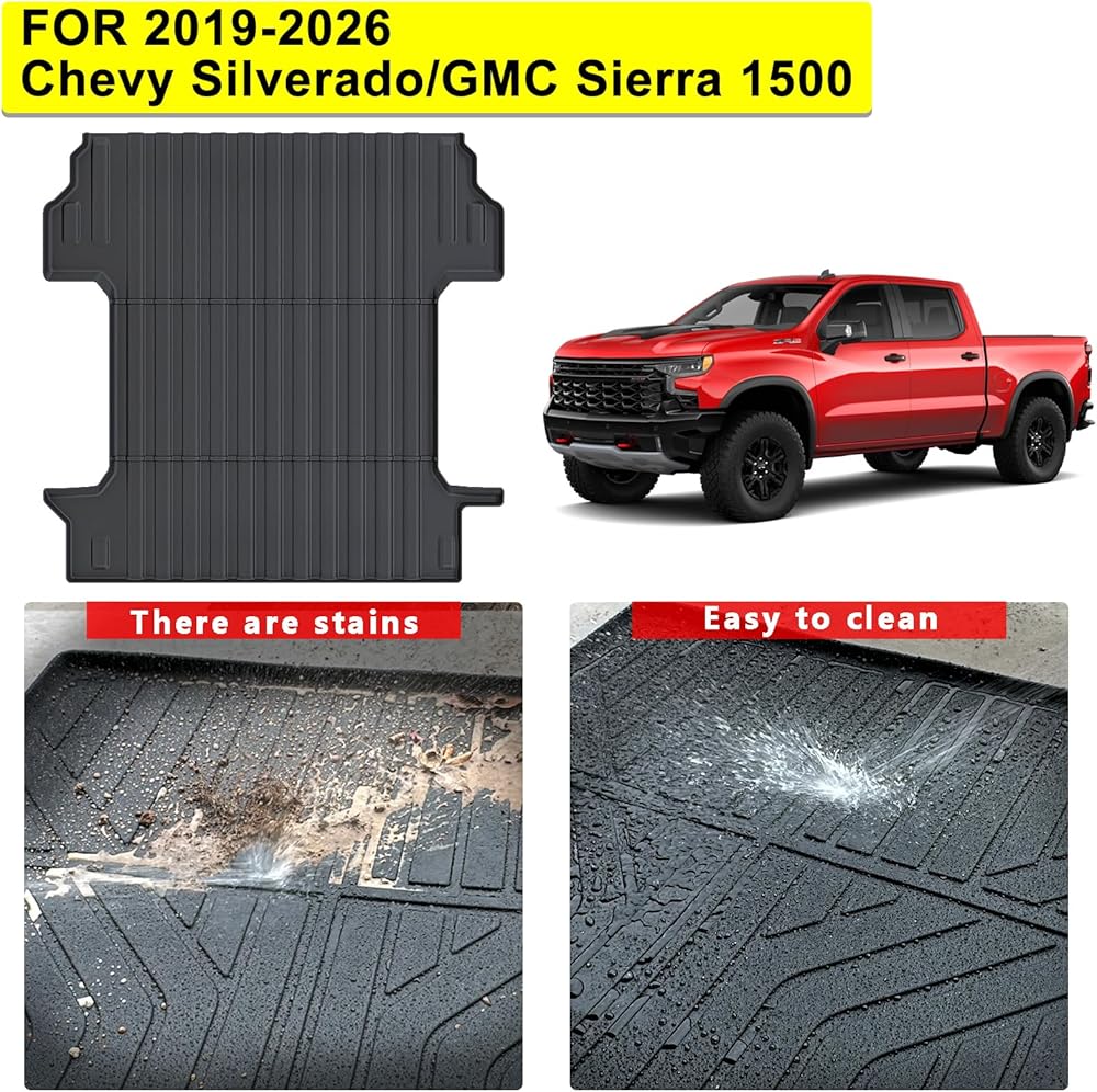 • 【🚗سهل التنظيف】يمكن لمسدس خرطوم الحديقة تنظيف بطانة شاحنة سجادات السيارة بسهولة لسيارة تشيفي سيلفرادو/جي إم سي سييرا 1500 2019-2026. تتوفر أيضًا قطعة قماش مبللة وبعض مياه الصنبور. الصيانة اليومية سهلة حقًا.