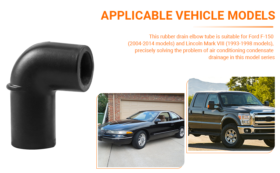 نماذج المركبات المطبقة: أنبوب الكوع المطاطي هذا مناسب لسيارات Ford F-150 (موديلات 2004-2014) ولينكولن مارك VIII (موديلات 1993-1998)، مما يحل بدقة مشكلة تصريف مكثف تكييف الهواء في سلسلة الطرازات هذه.