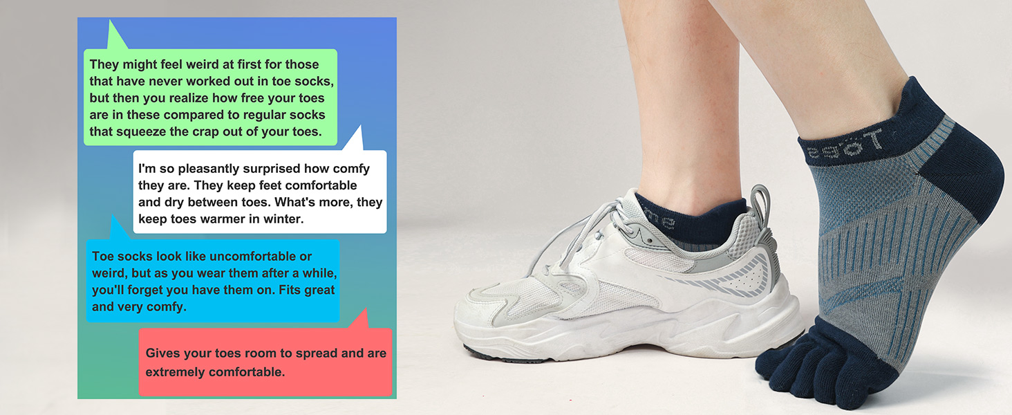 • جوارب للكاحل: توفر هذه الجوارب عند أصابع القدم مساحات فردية لكل إصبع قدم، مما يسمح بمرونة وحركة أفضل لأصابع القدم. تبقى في مكانها جيدًا في حذائك سواء كان المشي أو الجري أو المشي لمسافات طويلة أو ممارسة الرياضة.