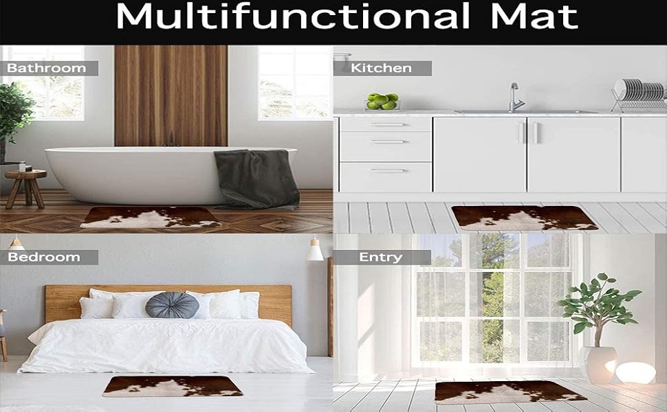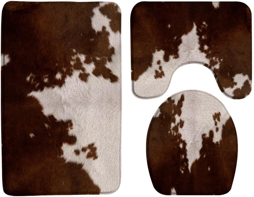 GCTNBJL جلد البقر 3 قطعة مجموعات حصيرة حمام، حليب البقر البني الجلد طباعة مزرعة الحيوان الفاخرة خمر الغربية ريفي الرجعية الحمام المطبخ رغوة الذاكرة البساط، 16 "× 24" حمام حصيرة، غطاء مقعد المرحاض، المرحاض على شكل حرف U