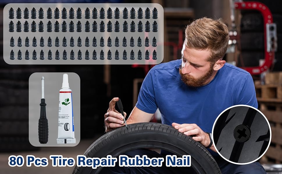 أبسط طريقة لإصلاح الإطارات، ذيلها صغير ورفيع، يسهل تثبيته في الإطار دون بذل الكثير من الجهد، ويمكن للخيط السميك الأوسط أن يعزز بشكل فعال قوة العض بين المسمار والإطار، لا يسبب ضررًا للإطارات، لا تحتاج إلى إزالة الإطار لإصلاحه.