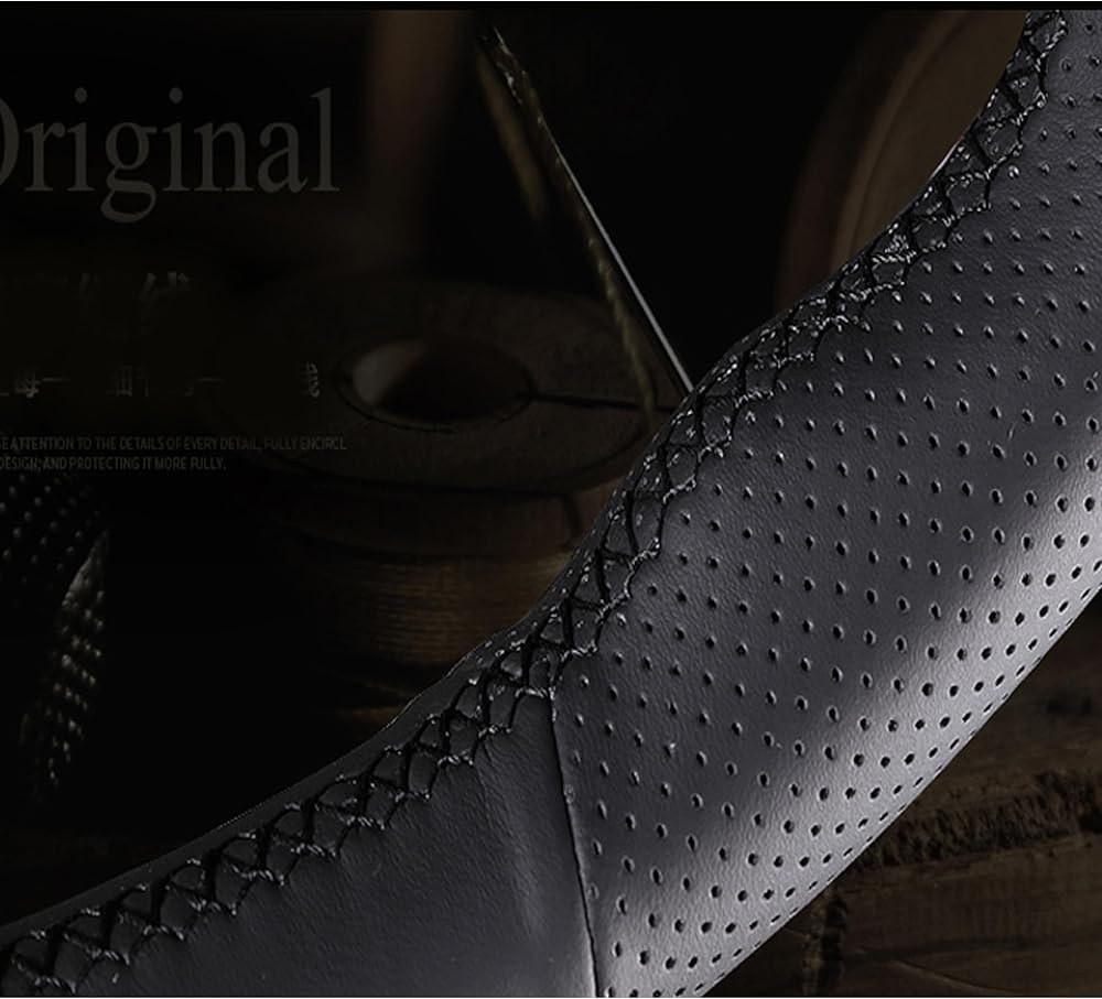 Features: Using this hand sewn steering wheel cover, every detail of the steering wheel can be perfectly wrapped, just like the original factory. This steering wheel cover can protect the new steering wheel or cover the damaged old steering wheel, making it look brand new.