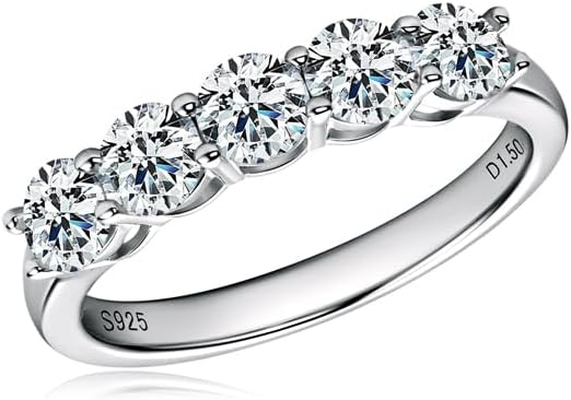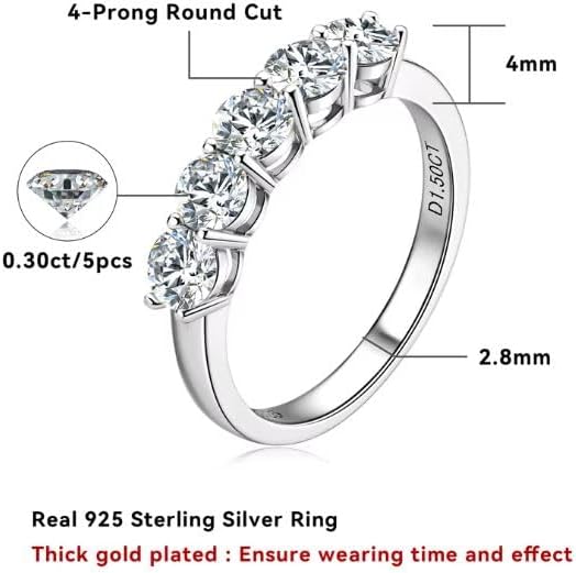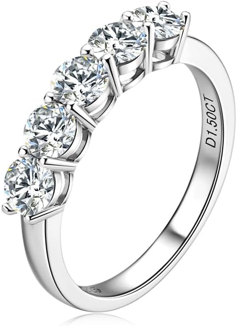 PREMIUM STONE: Features a stunning five-stone ring set with 5pcs of 0.3 ct totaling 1.5cttw (4mm a single stone) with D Color and VVS1 Clarity for exceptional brilliance and fire.