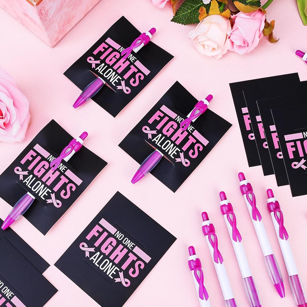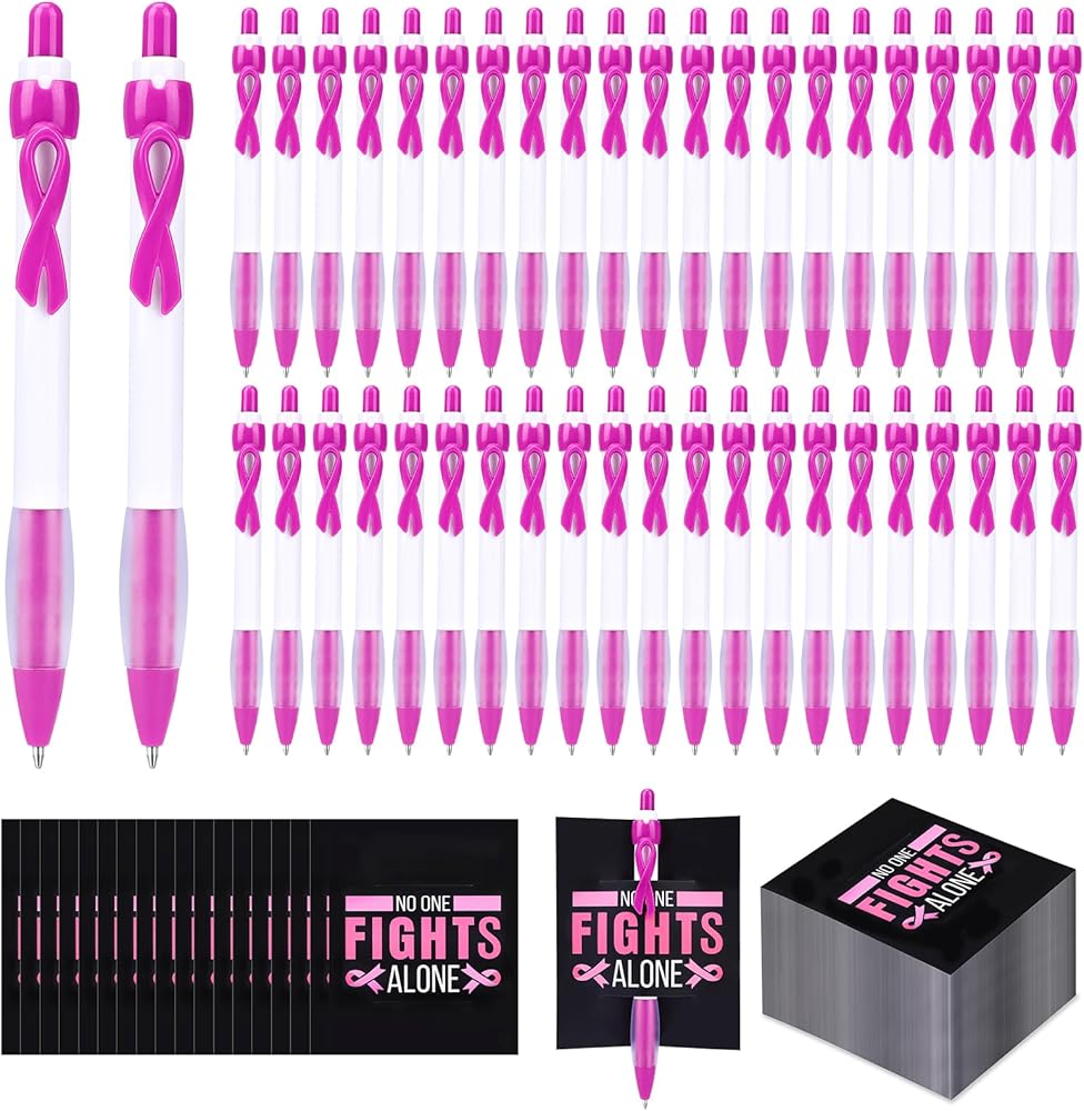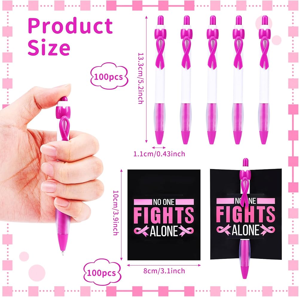 BREAST CANCER AWARENESS PENS: 100 pens and 100 writable pink ribbon cards included for easy fundraising and event giveaways.